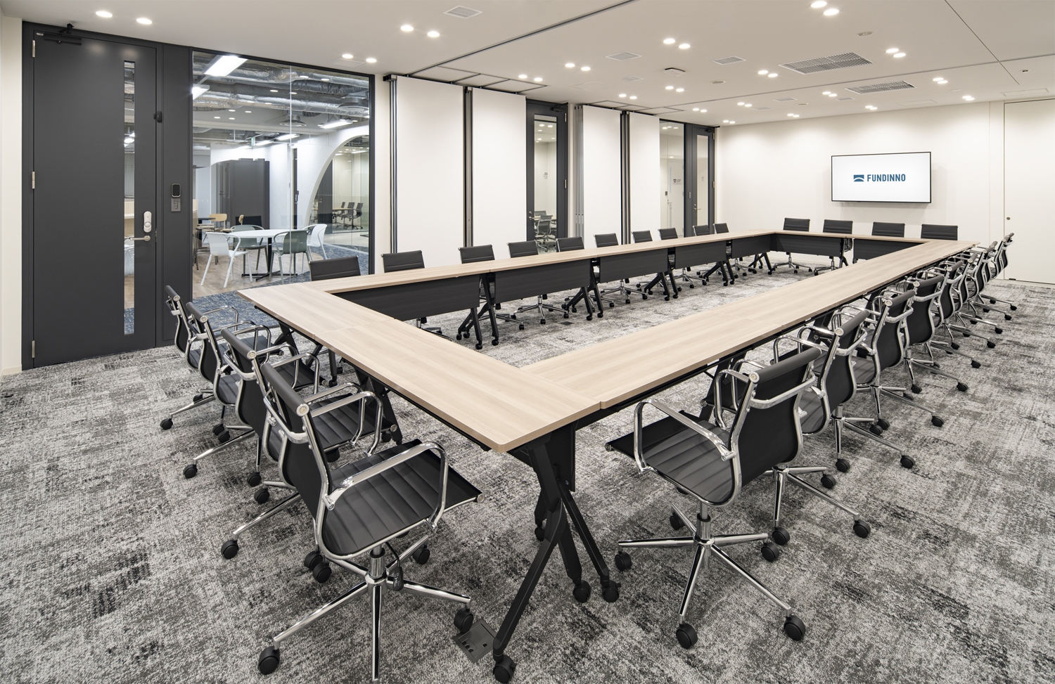 移転前のオフィスは増員にスペースが追いつかず、執務エリアや会議室の慢性的な不足に悩まされていました。加えて、コロナ禍の環境対応としてリモートワークをいち早く導入したことから効率的に業務ができていましたが、新規メンバーや部署を超えたコミュニケーション活性化が会社の成長に繋がると考え、週3日の出社方針を打ち出し、チームで乗り越えようのクレドにマッチするオフィス構築を目指しました。「行きたくなるオフィス」の構築により、社員のみならず投資家やステークホルダーも含めたコミュニケーションの活性化を図りました。