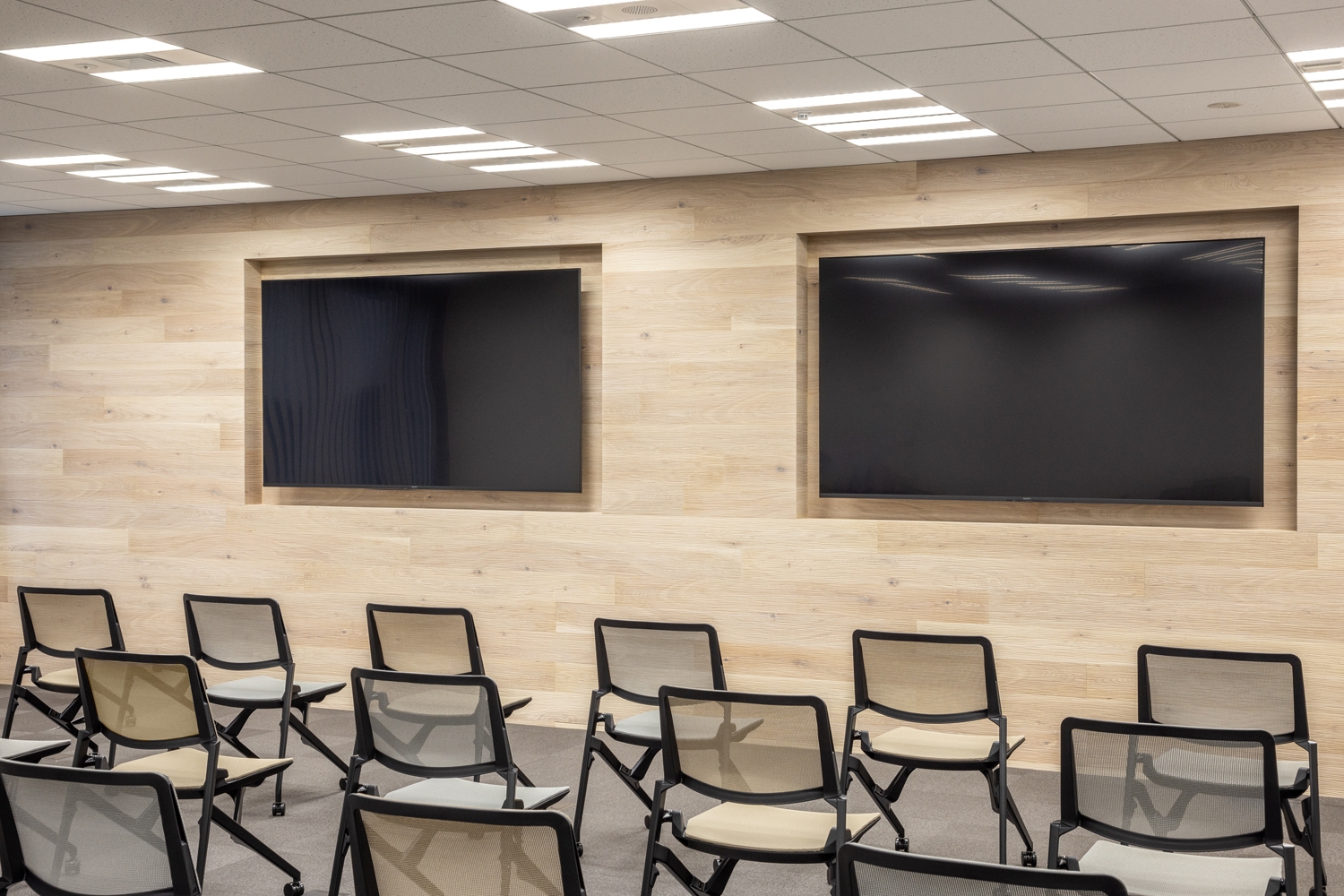 多様なメンバーの交流を促進するため、全員が通る動線上にコミュニケーションエリアを配置。異なる拠点にいたグループ法人が一つのオフィスで勤務するようになり、ラウンジやカフェテリアでは、以前は知らなかった社員同士が自然とコミュニケーションを取り合うようになりました。執務エリアでは縦横を交えたデスク配置とし、あえて複雑に交わる動線がコミュニケーションを促進させています。これらにより、情報交換がスムーズに行われ、ビジネス面でも効率と効果が大幅に向上しました。 デザインの面では、来社される方々に会社のこだわりを感じていただけるよう、素材感溢れるデザインを採用しました。大型エントランスカウンターには古材を使用し、セミナー室の正面壁には木パネルを取り入れることで、来客者の目に触れる部分に本物の素材を用い、細部にまでこだわりを表現しました。採用面でも、新たに設計された明るく開放的なオフィスが好印象を与え、採用率の向上にも寄与しています。