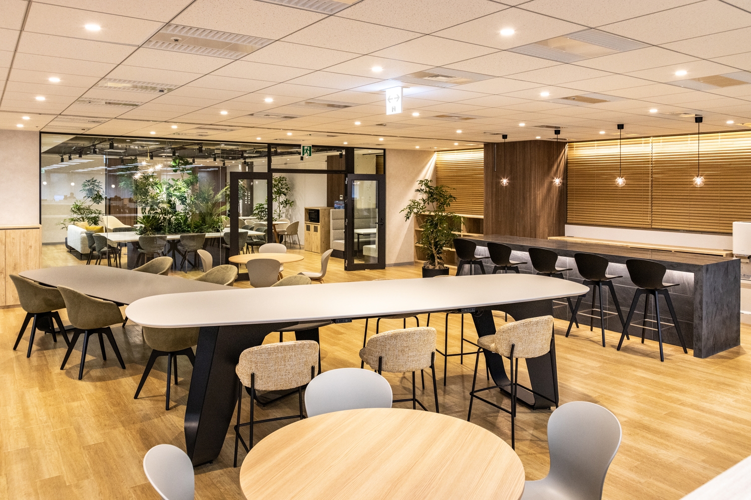 インターテックの日本グループは、分散していた拠点を一つに統合し、社内コミュニケーションを活性化させることを目的としておりました。従来の複数フロアに分かれたオフィスから、全員が一同に集うことで、日々の業務における交流と協力を促進し、『One Intertek』の精神を体現する環境を創出することを目指し、自然光やグリーン、ホームファニチャーを取り入れた「家」のように快適で生産的なワークスペースを実現しました。