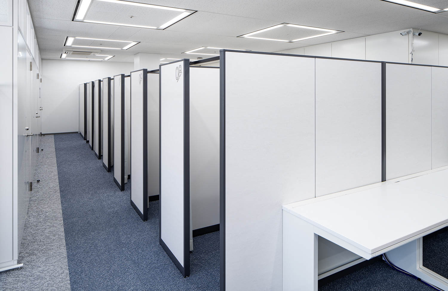 クライアントの各種セキュリティ装置やネットワーク機器を外敵(サイバー攻撃)から守るという観点から、『地球防衛基地』をコンセプトに設定し、近未来的な空間をデザインしました。オフィス自体がネットワーク機器や情報システムへの脅威を監視するSOCRoomの機能を果たしている24時間365日稼働の運用であるため、執務エリアと休憩スペースをしっかり仕切る事で業務と休憩の切り替えがしやすいよう工夫しました。エントランスのデザインは来客者にインパクトを与えられるような宇宙をイメージした特徴的なデザインを施しています。