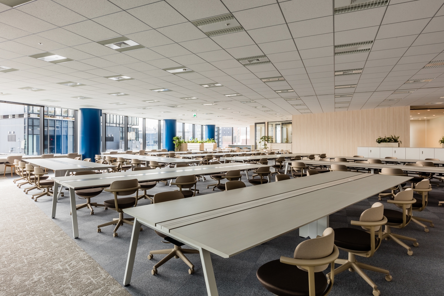 会社の成長にともなう増員と、これまでの働き方をアップデートしたいという想いのもとスタートしたプロジェクト。現状の課題を洗い出すべくワークデザインサーベイも実施し、移転後の一体感の醸成やさらなるコミュニケーション機会の創出を目指しました。また、移転と同時にリブランディングプロジェクトも並行して進めており、オフィスプロジェクトにも新たなブランドイメージを投影することで、新たなイメージの確立と統一感のある空間を目指しました。