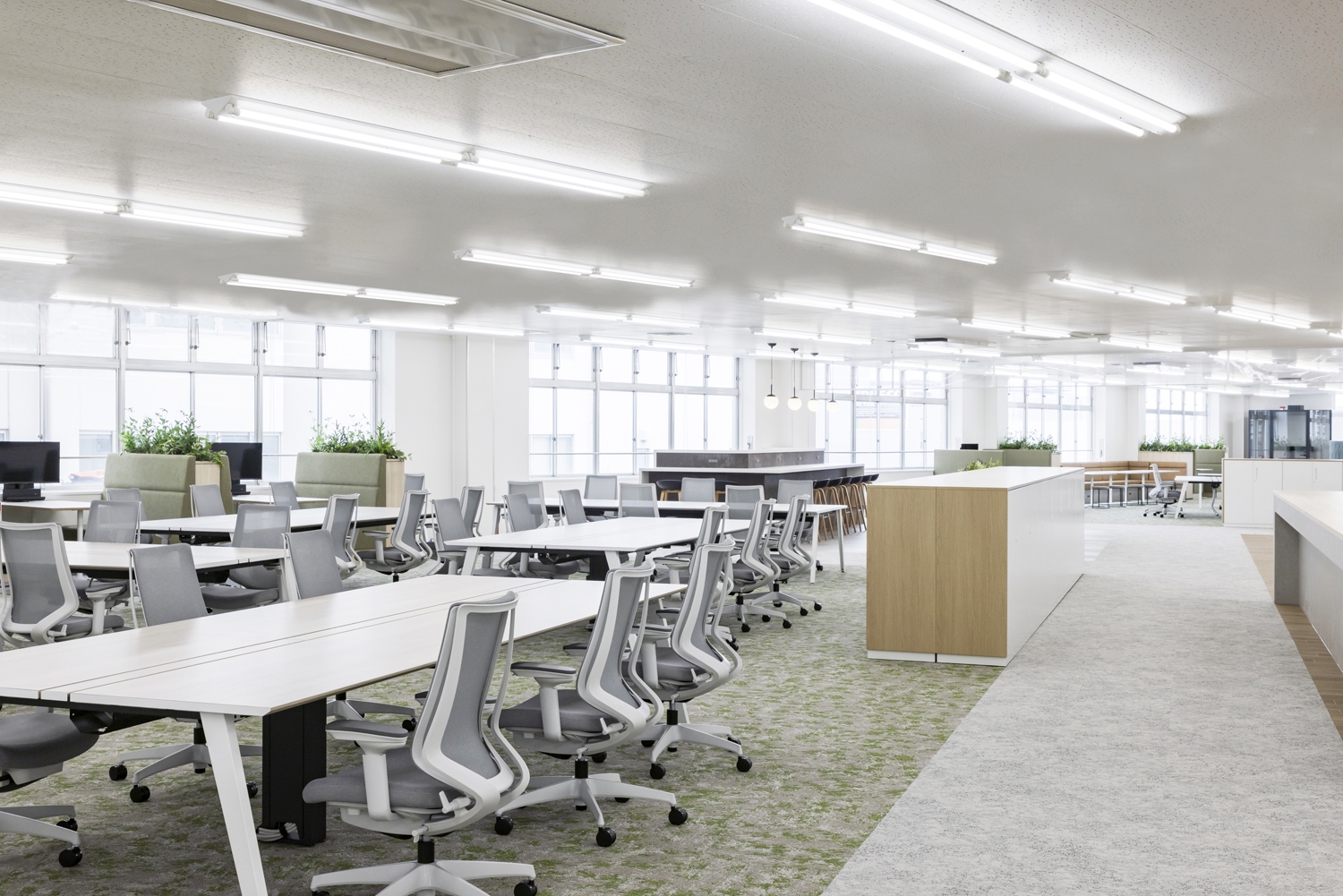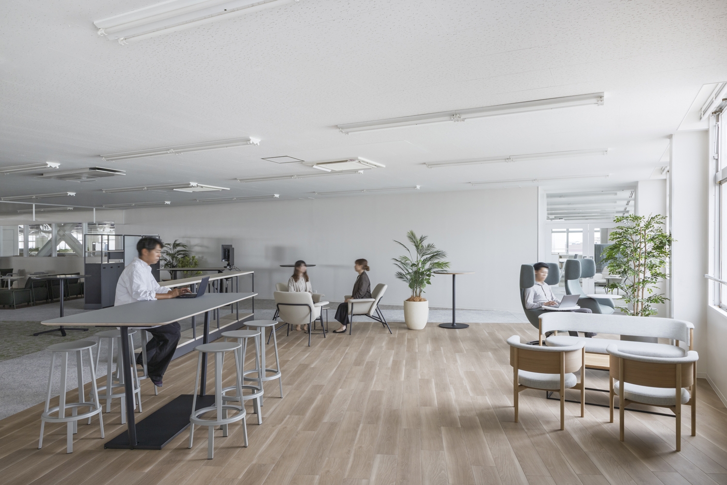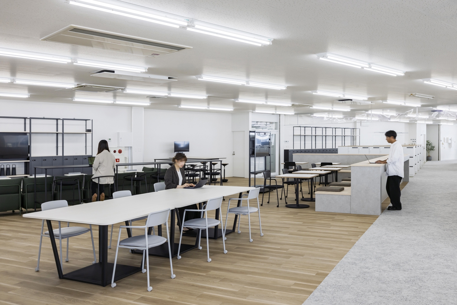 事業移転にともない、オフィス環境を見直すことを決意。働く目的や業務内容に応じて多様で柔軟な働き方ができるオフィスレイアウトを構築することを目指しました。そして、効率的に業務を遂行できるオフィス環境を創造し、生産性やパフォーマンスの質の向上を図ること、あわせて、社員のウェルビーイング向上の実現に尽力しました。