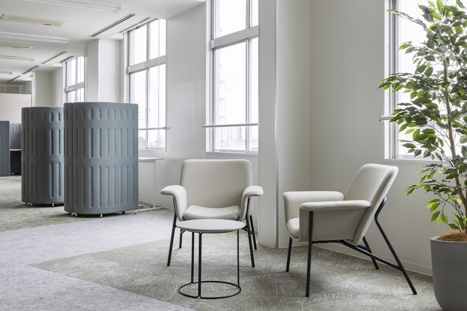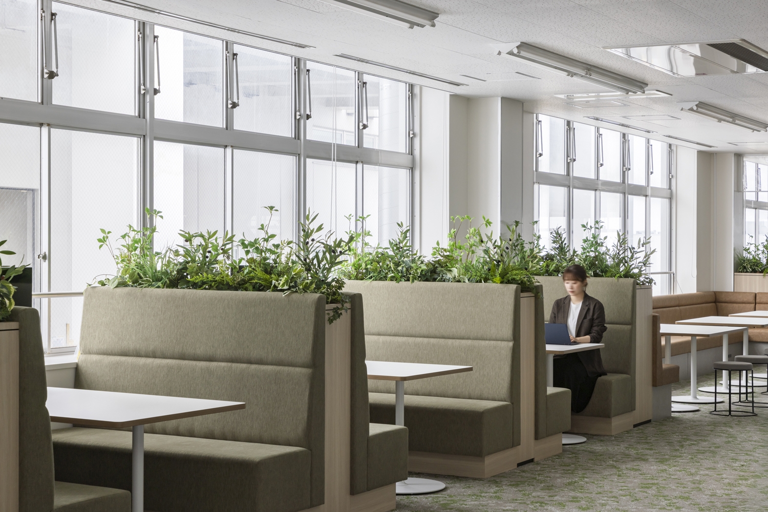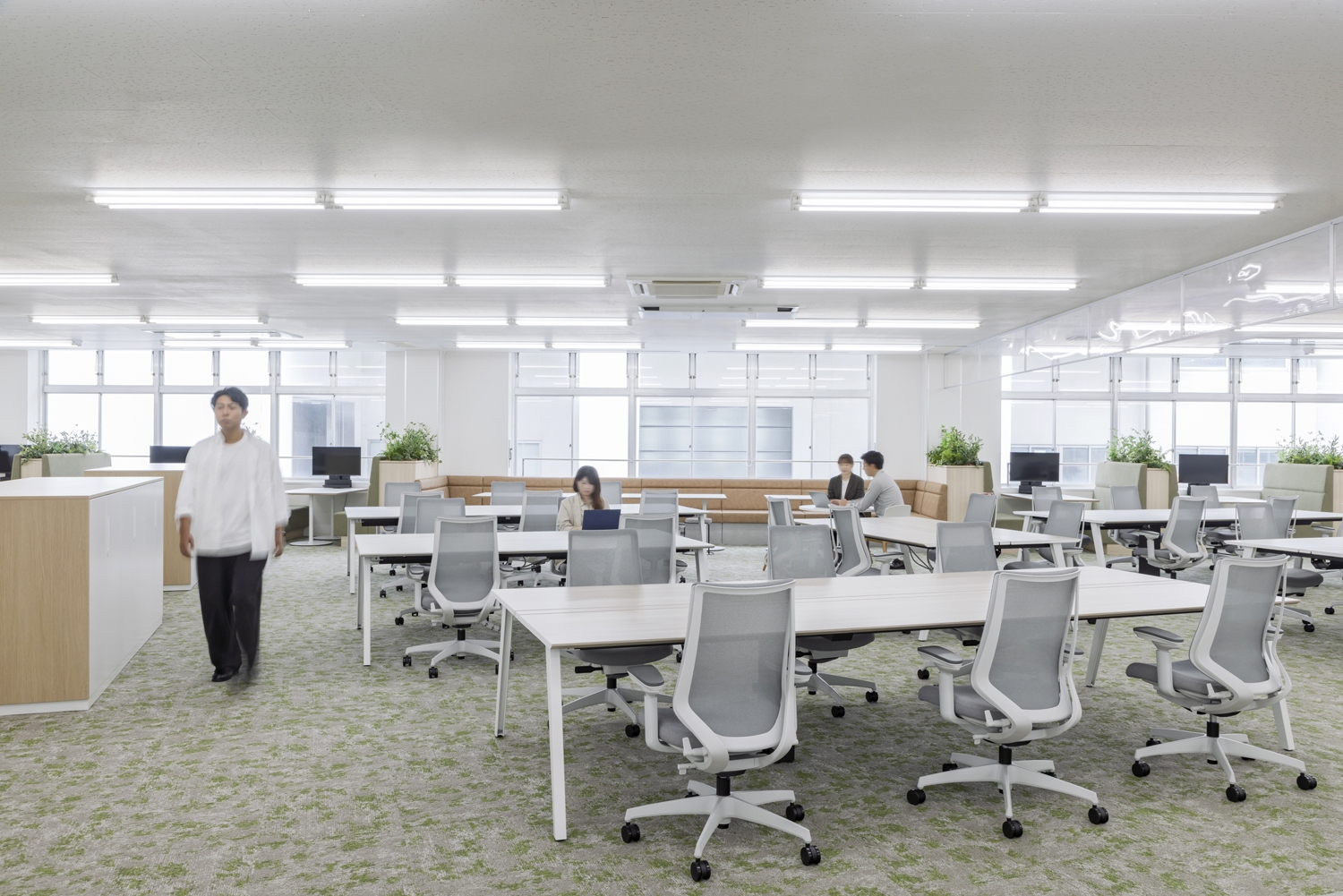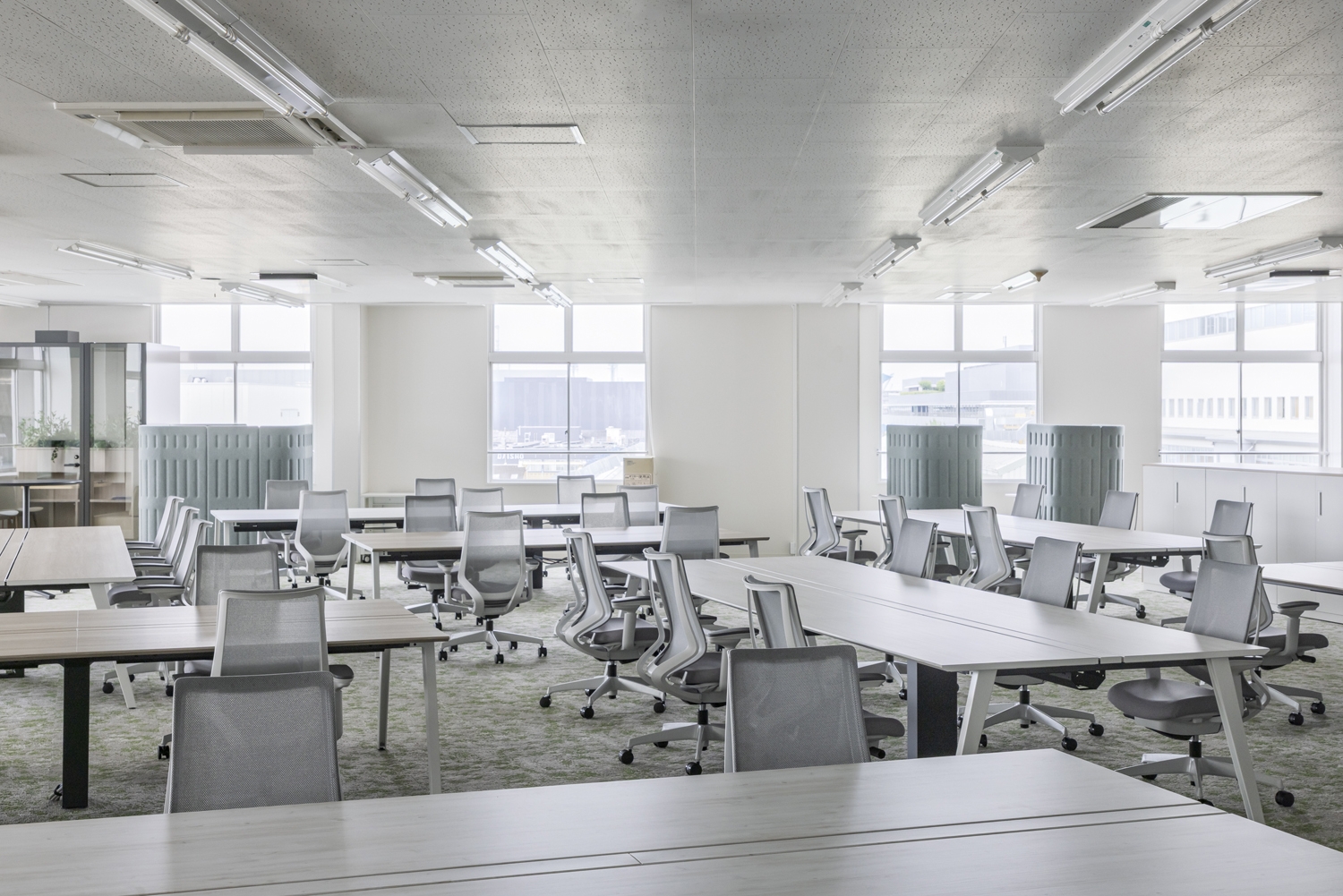 事業移転にともない、オフィス環境を見直すことを決意。働く目的や業務内容に応じて多様で柔軟な働き方ができるオフィスレイアウトを構築することを目指しました。そして、効率的に業務を遂行できるオフィス環境を創造し、生産性やパフォーマンスの質の向上を図ること、あわせて、社員のウェルビーイング向上の実現に尽力しました。