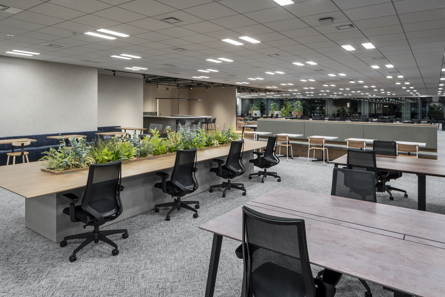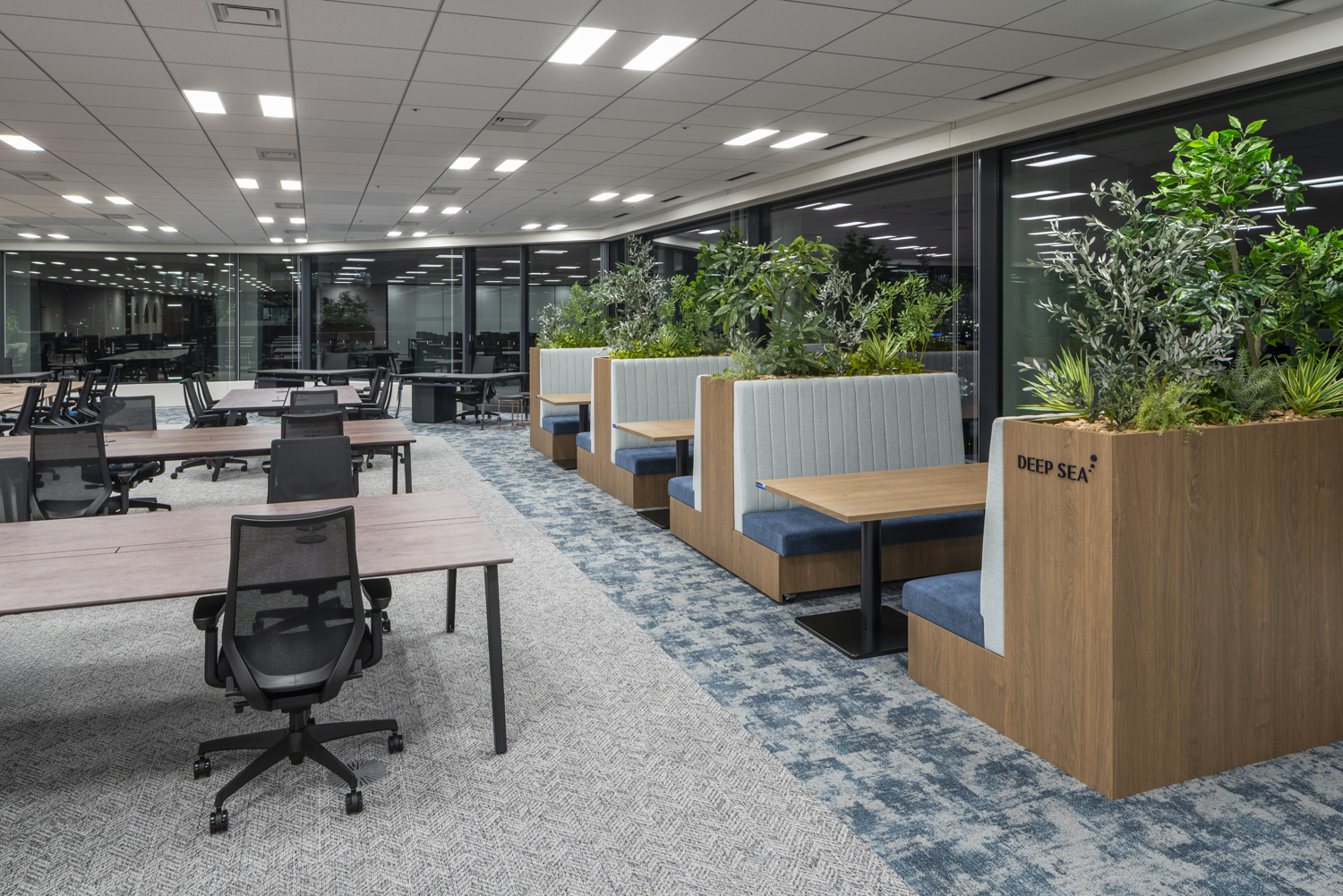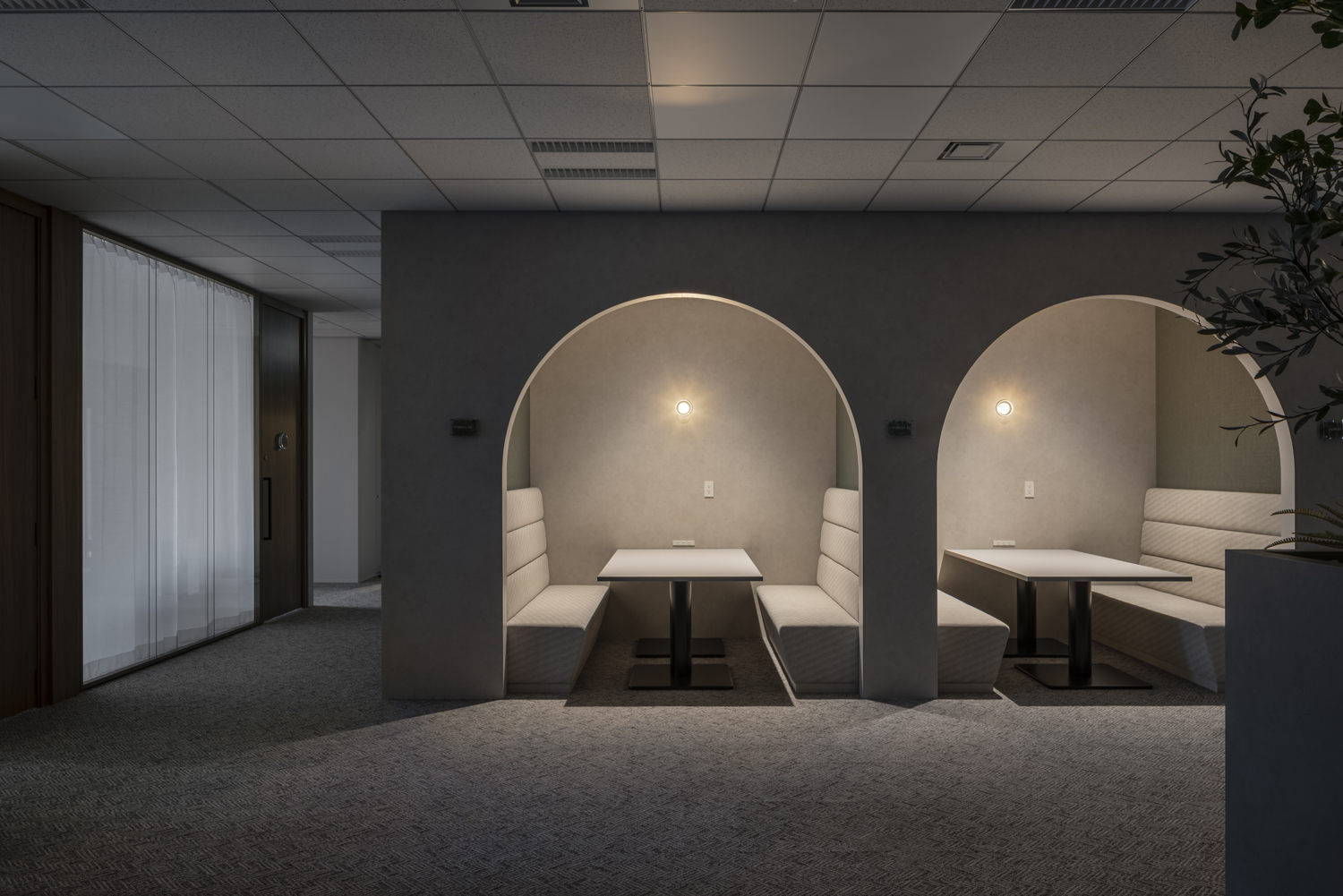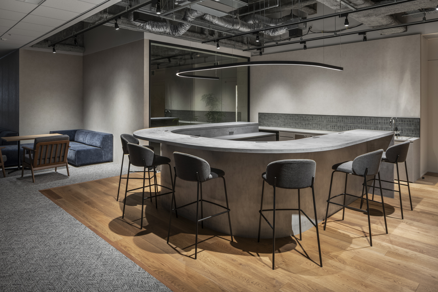 波紋のように広がるレイアウトは本社の変化が社内外へ波及し、日本全国・海外へと拡張していく未来を表現した象徴的な設計となっており、部署や社員の垣根を越えた偶発的な出会いや対話を誘発し、そこから新たな価値が生まれる場を創出します。