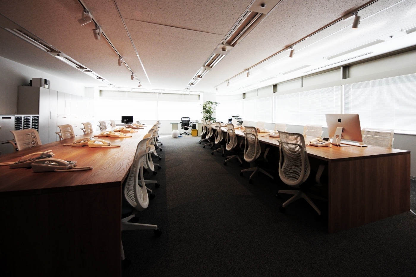 東京オフィスの曲線の壁やナチュラルな雰囲気を踏襲しつつも、より洗練された新しい空間になるようプラン致しました。ライティングにもこだわり、照明器具1つ1つの照らし方、取り付け位置についてもお客様と議論を重ね、ライティングさせて頂きました。エレベーターからの動線を意識し、エントランスは大きくアールの壁を作ることで、奥行き、広がりを感じる空間になっています。会議室、廊下、オープンMTGスペースという各空間のつながりも意識してレイアウトを作成いたしました。