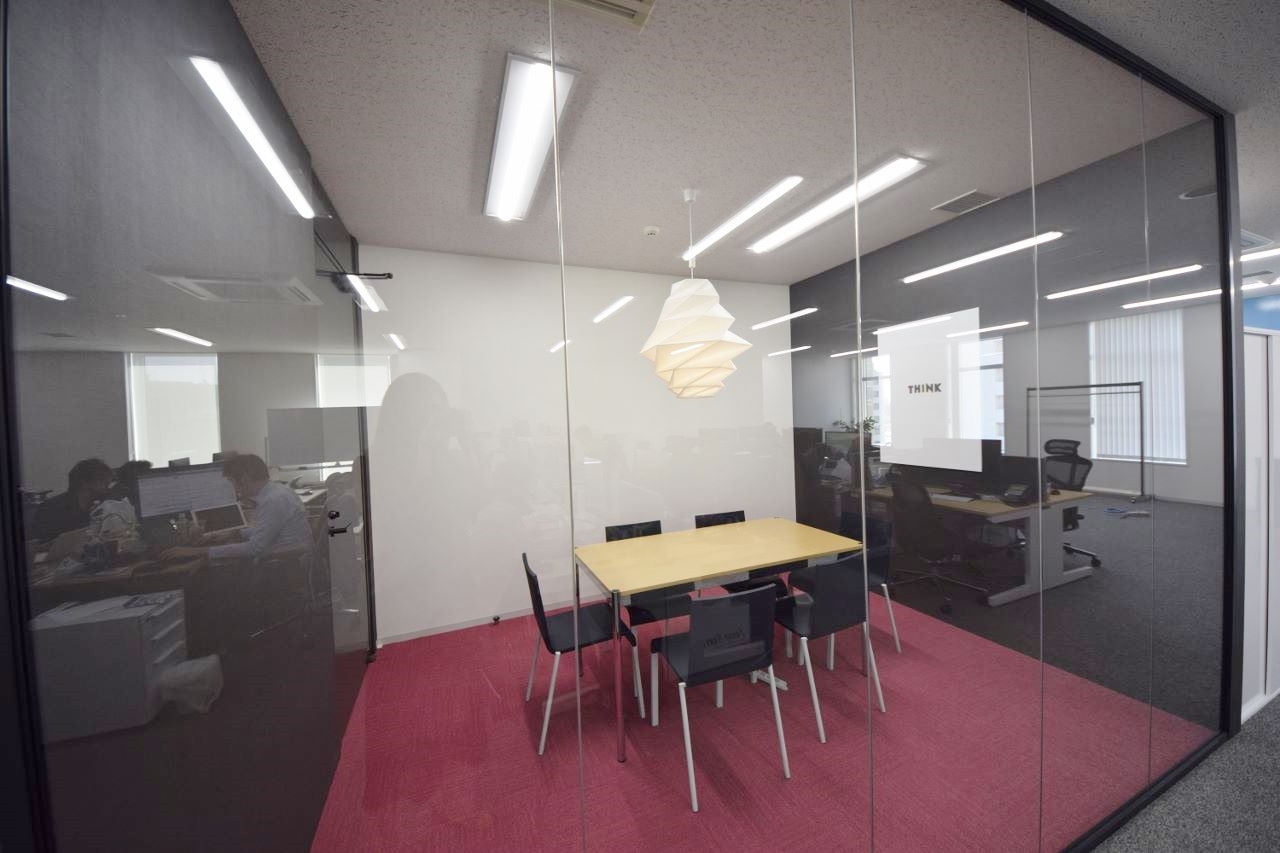 「愉しいは つくれる」というコンセプトのもと、集まる・感じる・リラックスする・考える 4つの機能が詰まったオフィスが誕生しました。 エントランスのRガラスが空間を柔らかく間仕切りつつ、会議室へと誘います。ガラスの会議室は窓の外まで見渡すことができ、オフィスの端から端まで繋がっているような広がりのある空間となっています。コンセプチュアルな会議室は、用途や気分に合わせてご使用いただけます。 木目を床・壁・天井にあしらっており、貼り方・流し方で様々な視覚的印象を与えています。明るい色味やアートは空間のアクセントに。ダークトーンが空間を締めていて、スタイリッシュな空間に仕上がりました。