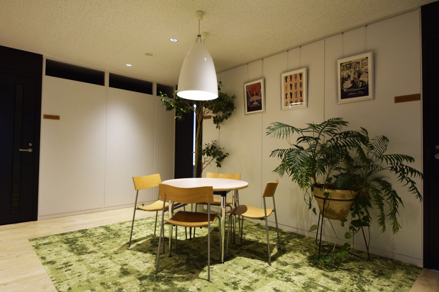 イオンフォレスト様の新しいブランドイメージ「ENRICH」をもとに、豊かさと上質さをコンセプトにデザインしました。エントランスの左側壁面全体にグラフィックシートを使って、ブランド理念とコンセプトビジュアルを表すことで、来訪された全ての方に高いブランディングを感じていただけます。随所にグリーンと置き型観葉植物を配置することで、企業としてのクリーンさやECOに対する意識の高さをアピールします。ワークスペースとリフレッシュエリアの壁を全面ガラスにすることで、空間の広がりをもたせました。壁面にはプロジェクターを投影できるスペースを設け、リフレッシュエリアでイベントを催すこともできる汎用性のある空間となりました。クリーンで温かみのある、イオンフォレスト様のブランドイメージを体現したオフィスとなりました。