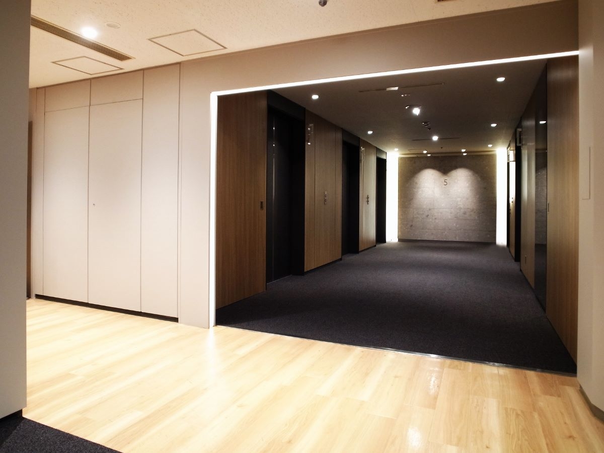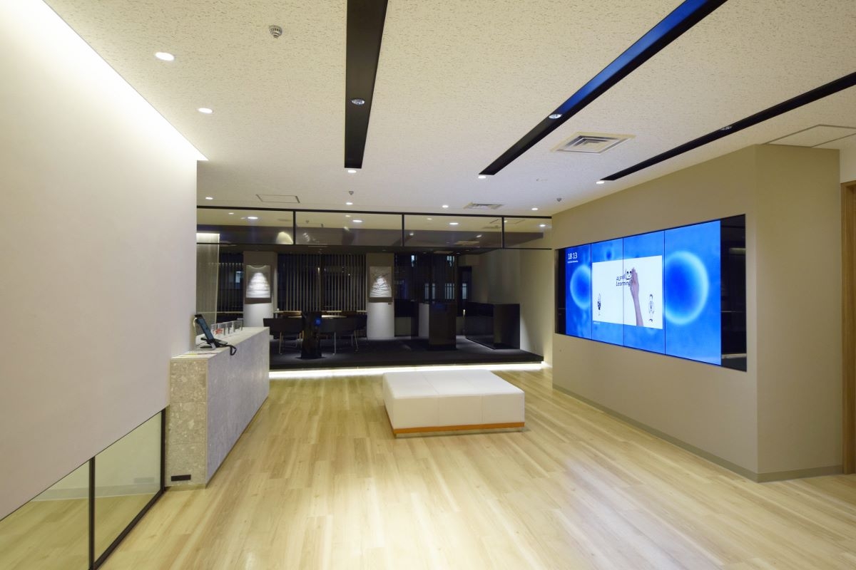 D2C様にとって、10年ぶりのご移転プロジェクト。 「ドベンチャーではない」「スタイリッシュでかっこいい」ーそんなイメージキーワードを拾いあげたコンセプト『PRIDE』に沿ったオフィスデザインを施しました。 来客フロアはエレベーターホールからトイレまで全面的に改装を行い、フロア全体で統一感のある大人の洗練された空間に。 常に新しいデジタルコンテンツを提供し続けるD2C様らしく、エントランスではインタラクティブモニターがクライアントを迎えます。(コンテンツはD2Cグループにて独自開発) 来客フロア・執務フロアともに心がけたのは、人がスムーズに回遊する動線計画。面積は広くてもストレスは少なく、レイアウトもしっかりデザインされたオフィスが完成しました。