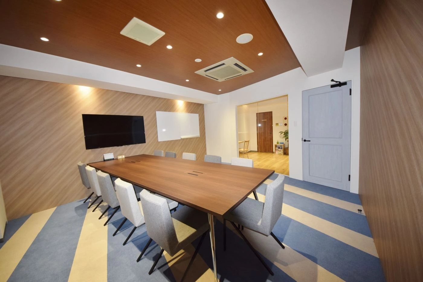 事業拡大に伴う、東京支店のご移転のお手伝いをさせて頂きました。 「HOME」というコンセプトのもと、エントランスは初めてご来社された方でも落ち着ける空間となるよう床と天井を木目調にし、家具類も木目に統一しました。 また各会議室はカーペットやチェアに色味を加えることでエントランスの落ち着いた雰囲気とは違った遊び心を表現しております。 外壁はガラス張りにすることで開放感とスタイリッシュさを表現しました。左官塗料で仕上げることでアクセントを加えております。