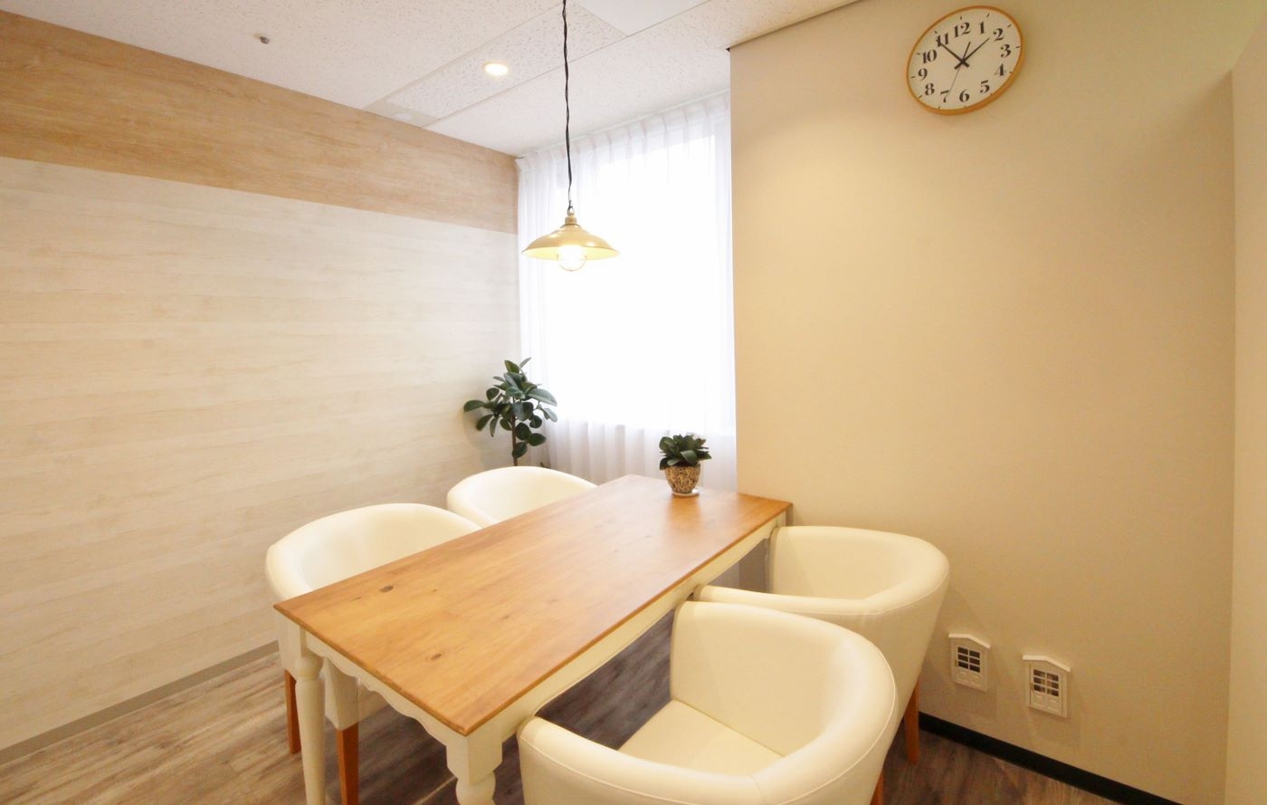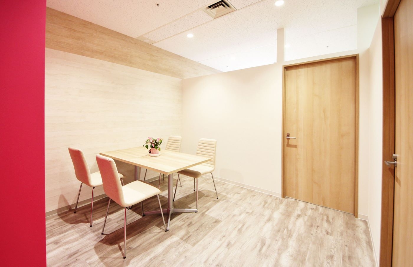 華やかなピンク色がエントランスに映える、女性らしいデザイナーズオフィスが名古屋に誕生しました。モデスティ様からのご要望カラーであるピンク、ホワイト、グリーンがナチュラルに溶け込むようにデザイン。優しいカラーリングが「お客様やスタッフの方に気持ちよく働いてほしい」という代表の想いを体現しています。レイアウト上スペースが限られてしまうエントランスには、ミラーを設け奥行き感を演出。ゆとりのある空間に仕上がりました。オープンの4名用ミーティングスペースは2名用ずつ分かれてもご利用頂けるよう、広めのスペースを確保しています。モデスティ様らしい、優しく華やかなオフィスとなりました。