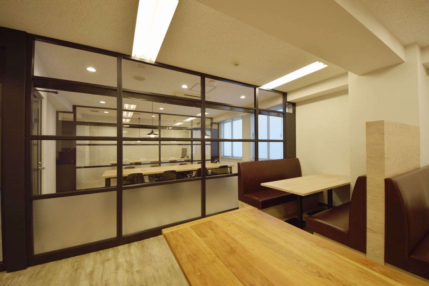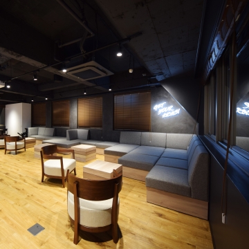 クリエイティブなスペシャリストたちが集うkiCk様のオフィス。さらなる仲間を迎えるためのご移転で、今回は無駄をそぎ落とし、シンプルながらも素材感を感じられると同時に機能性を重視したオフィスプランニングをさせていただきました。エントランスには鉄さび塗装を施したロゴサインが掲げられ、フロア全面には木目調の床材を施し、アクセントとして柱や照明器具・什器は黒でまとめることによりメリハリを感じられるオフィスに仕上がりました。