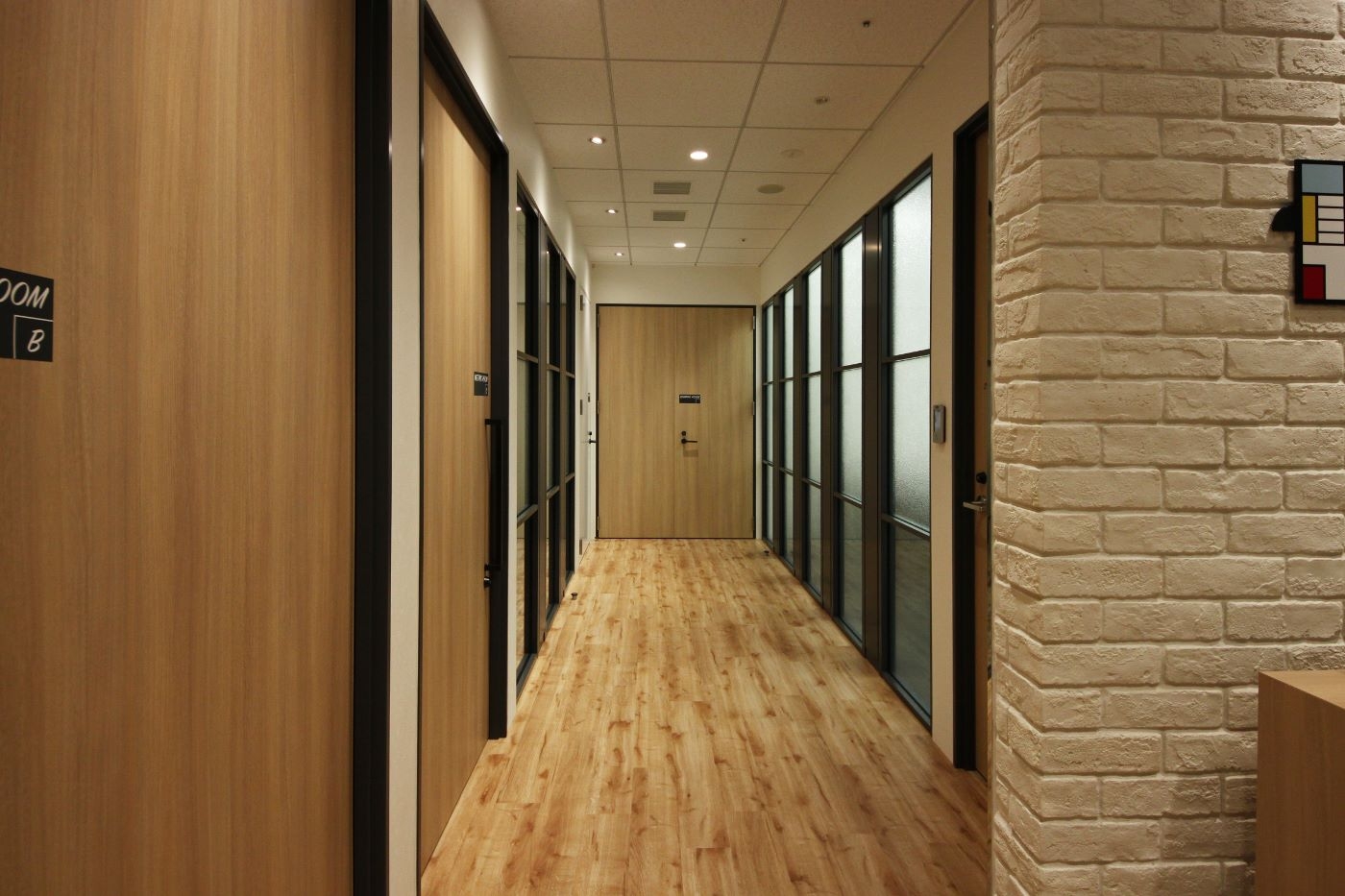 大井町営業センターの開設に続き、大阪オフィス増床計画に携わらせていただきました。大阪エリアでのさらなる採用強化をすべく、従来以上に若年層にも好感を持っていただけるよう白のブリックタイルと明るい木目柄を採用して、柔らかく温かみのある空間にデザインしました。照明の色味、木目柄やブリックタイルの持つぬくもり感や優しさが、お家のような雰囲気も感じさせながら黒の窓フレームが全体的に空間を引き締めております。また訪れたい、ここで働きたいと感じていただけるようなハートフルなオフィスに仕上がりました。