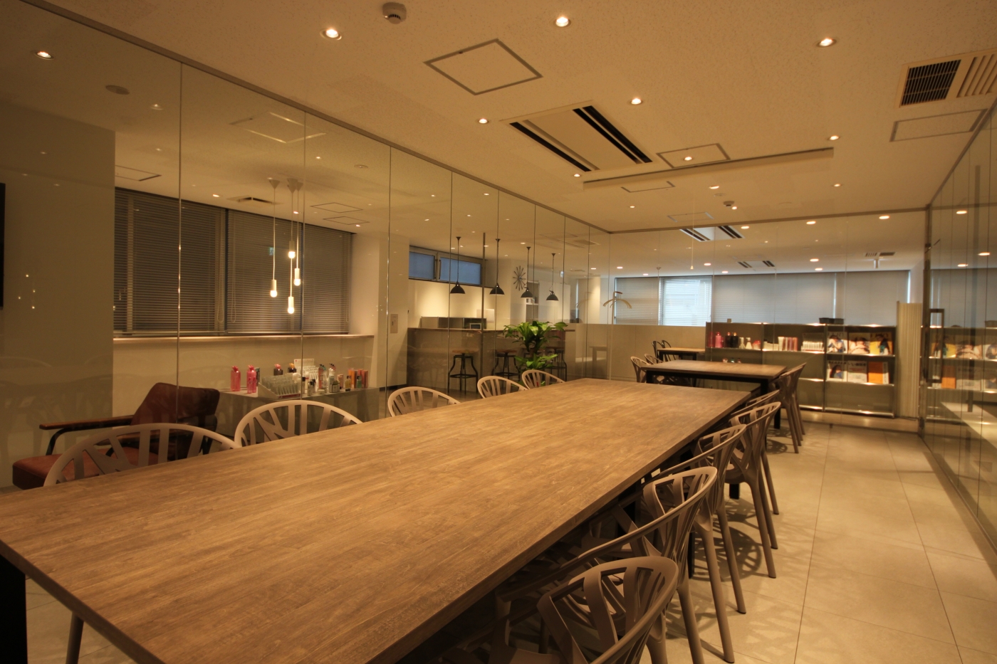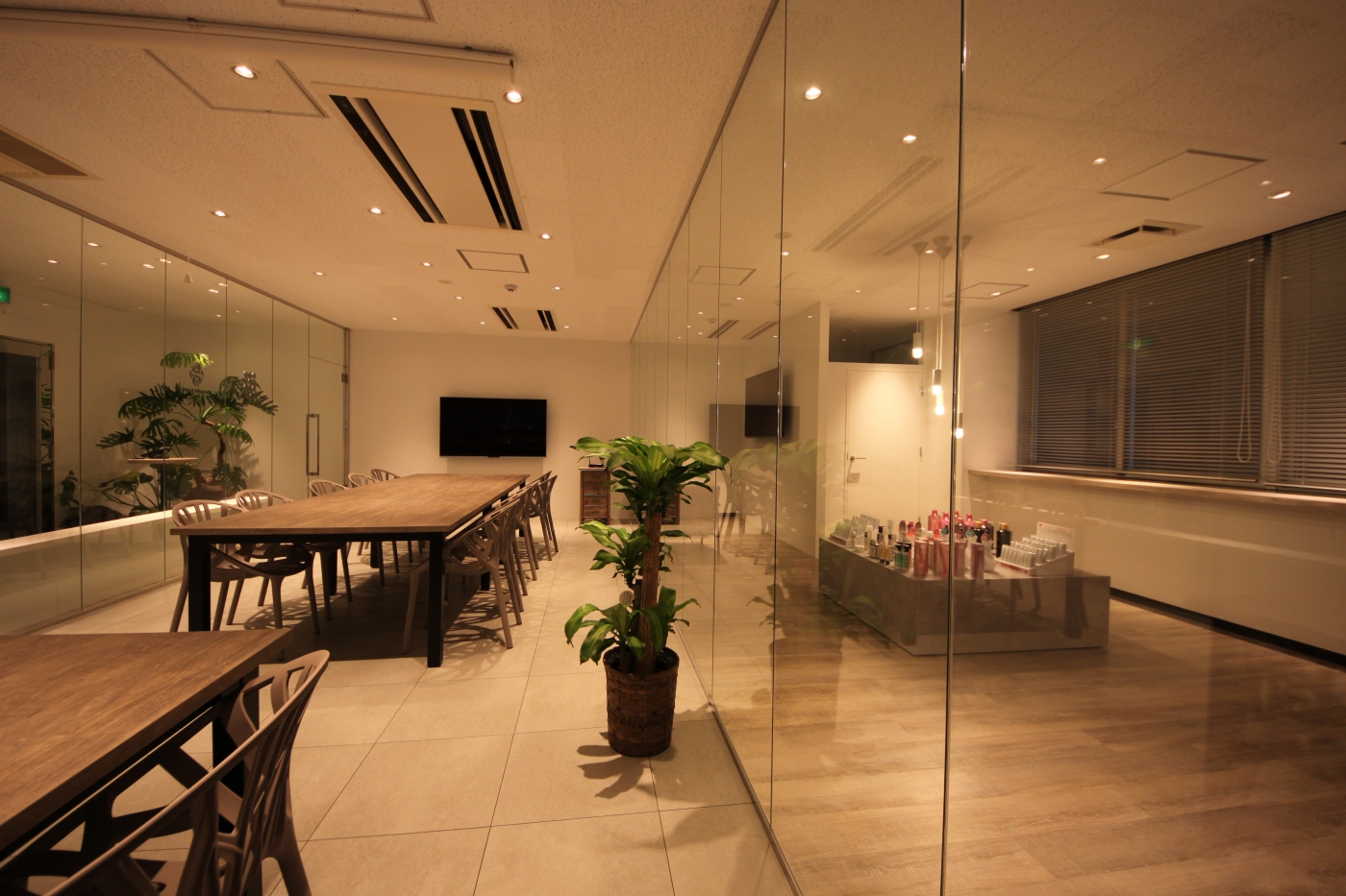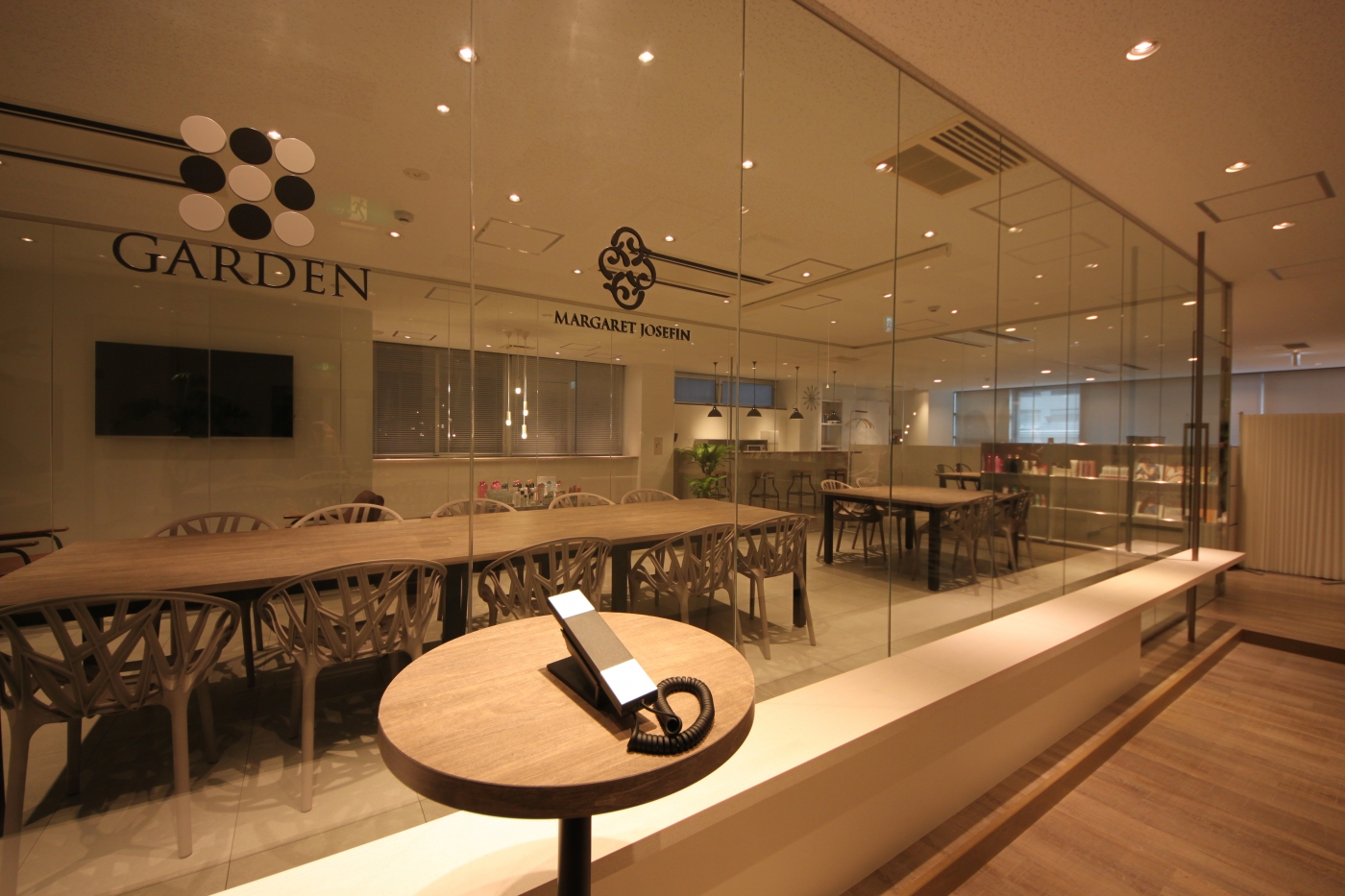 はたらく女性を意識したgarden様の名にインスピレーションを受け「ヴィーナスガーデン」をコンセプトにデザイン。ガラスの透明感が美しい洗練されたオフィスとなりました。自社商品が映えるようにシンプルながらも壁や床材、家具の色味のバランスにこだわりました。オフィス中央の会議室をガラス張りにする事で、空間全体がひとつのショールームのような印象をもたらし、オフィスとは思えない空間となっています。商品のこだわりとコンセプトデザインのこだわり、どちらも来られた方に感じて頂けるオフィスが完成しました。