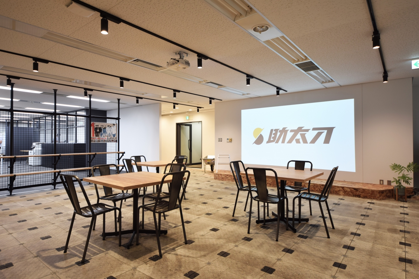 現場で働かれている職人さんへ向けたサービスを展開されている助太刀様。その事業をオフィス空間全体で表現させて頂きました。床はOAフロアをむき出しで施工することにより、素地の無骨なイメージを演出。エントランス部分にはコンパネとメッシュ筋といった資材でつくった電話台をレイアウトし、訪れる人に”現場感”を感じさせます。会議室やフリースペースに設置されているテーブルも、脚部をガス管で組み上げ、天板にはラーチ材を用いて造作することよって、オリジナリティと存在感あふれる家具となりました。オフィス全体のあらゆる所で、デザインと素材の細部にこだわり、事業である”現場”を体感できるオフィス空間となりました。