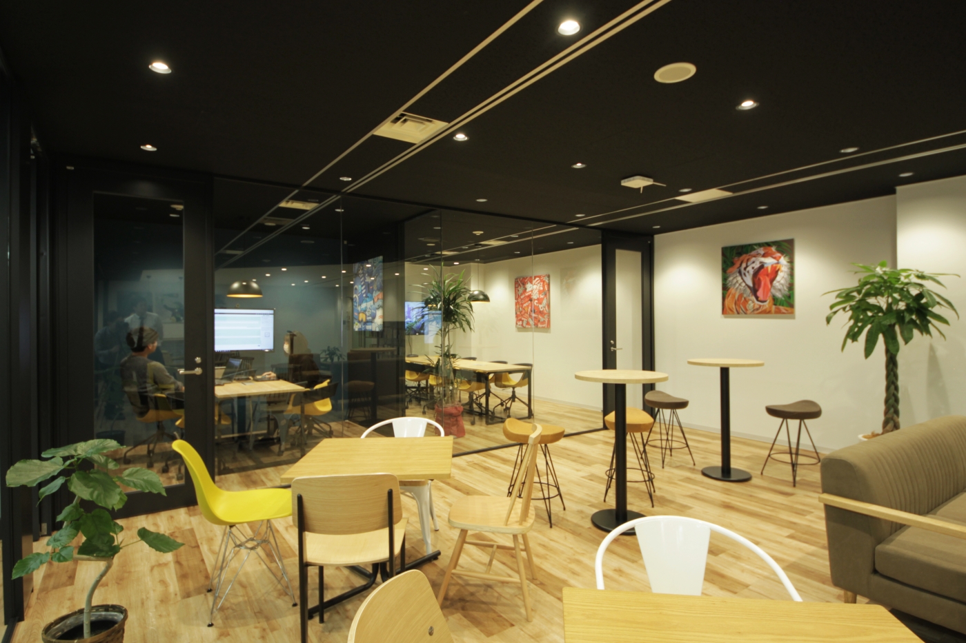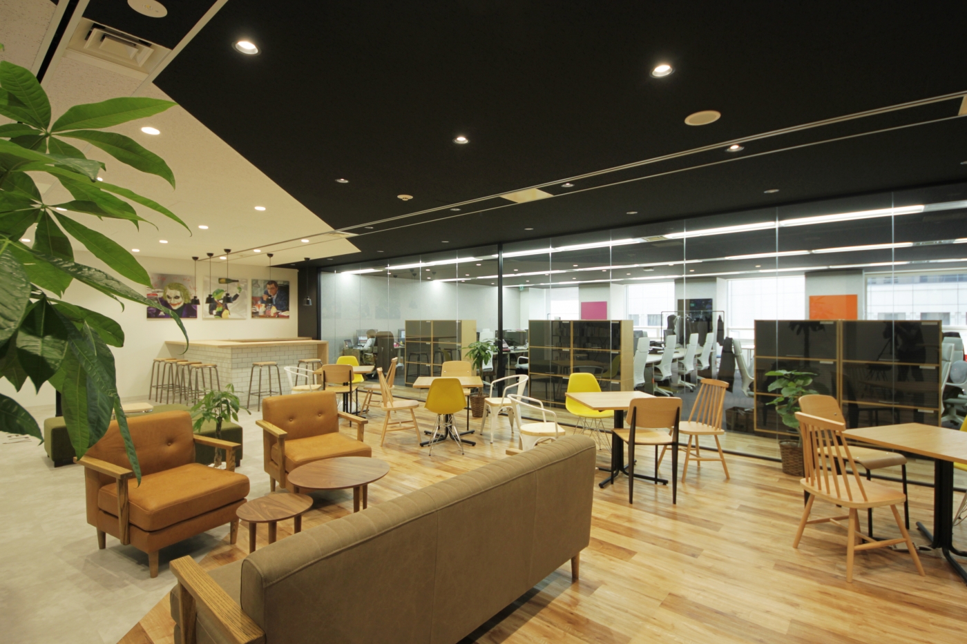 大きく事業拡大される中、ブランディング強化、イノベーティブな環境の実現を目指したデザイナーズオフィスを計画しました。オフィス全体の半分にも及ぶ面積を多目的スペースとして使用し、テーブルを移動してのフレキシブルな打合せや、スタンディング形式、ソファ対面式での打ち合わせなど、様々なスタイルが選べる環境をつくりました。それによってスタッフの皆様の創造力を最大限に引き出し、クリエイティブなディスカッションをすることを可能にしています。大きくスペースを分断する間仕切りも一面ガラスにすることで、働く雰囲気を来客の方にも感じてもらえるようなオープンな環境となっております。