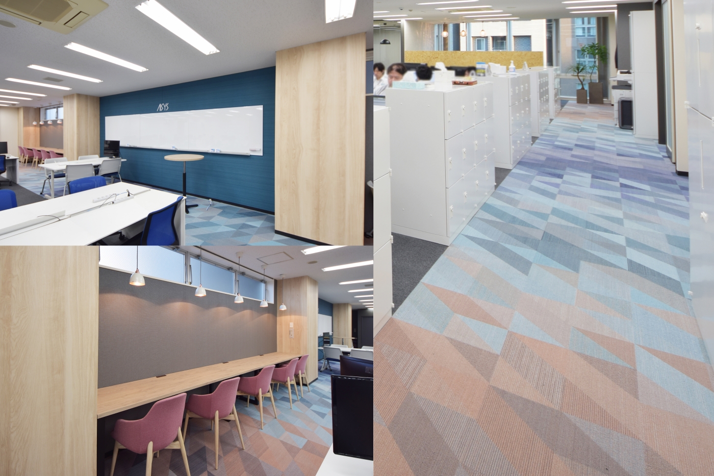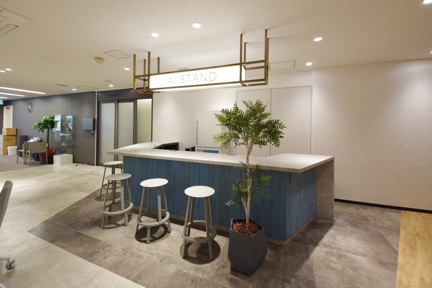 エレベーターホールの自動ドアを開けるとフリースペースがオープンに広がります。中に入って振り返った位置には、コーポレートカラーのブルーを基調とした「AI STAND」(カフェ)を設置し、社員のコミュニケーションの核となるような場所としました。誠実さや明るさを感じられるクールなデザインに仕上げています。一方開発室のフロアには壁面にホワイトボードやオープンミーティングスペース、靴を脱いで上がれる畳スペースを設けることで、社員のヒラメキがいたるところで発生する仕掛けづくりを行いました。