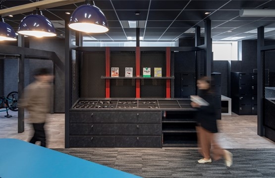 渋谷から五反田へ新天地への移転ということで、今までの印象とは異なる、新たなブランディングを発信する場になるようデザインしました。エントランスはシンプルにまとめた半面、横のガラス窓から見えるリフレッシュエリアにはロゴやグリーンを配置し、社員の皆様や来社されたお客様がわくわくできる空間になっております。会議室にはそれぞれ部屋の名前に合わせたアートやグリーンウォールを取り入れ、内容に合わせて部屋を選ぶことができます。社員の皆様が最大限のパフォーマンスを発揮できるよう、コミュニケーションスペースを中央に集約し、業務内容によって働く場所を選択できるようにしました。