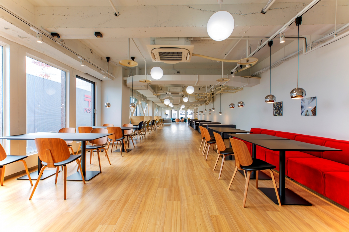 宮崎オフィス8階と同じくREGAIN GROUPのブランドコンセプトである「新しい"eigyo"のかたち」を踏襲し、「地方の雇用創出」を目標にした増床プロジェクトのお手伝いをさせていただきました。”ABR(Activity Based REGAIN GROUP)”というコンセプトをもとに、ABW(最先端の働き方)とRGG(リゲイングループ様らしい働き方)を掛け合わせた新しいオフィス創りを目指しました。”R”には隠された3つの要素として、1.Remote(働きやすさ)、2.Refresh(生産性向上)、3.Regional Activity(地域活性)という意味を持たせたオフィスになっています。廊下は壁面をガラスにして開放感を演出し、ソファを置くなど人が溜まる仕掛けをつくることでオフィス全体に活気が生まれるようにしました。コミュニケーションスペースは壁面にグリーンウォールとネオンサインを設置し、社内/社外に向けてリゲイングループ様らしさを伝える空間となっています。オフィスで働く社員の皆様がより快適に仕事に集中できる環境を整えました。
