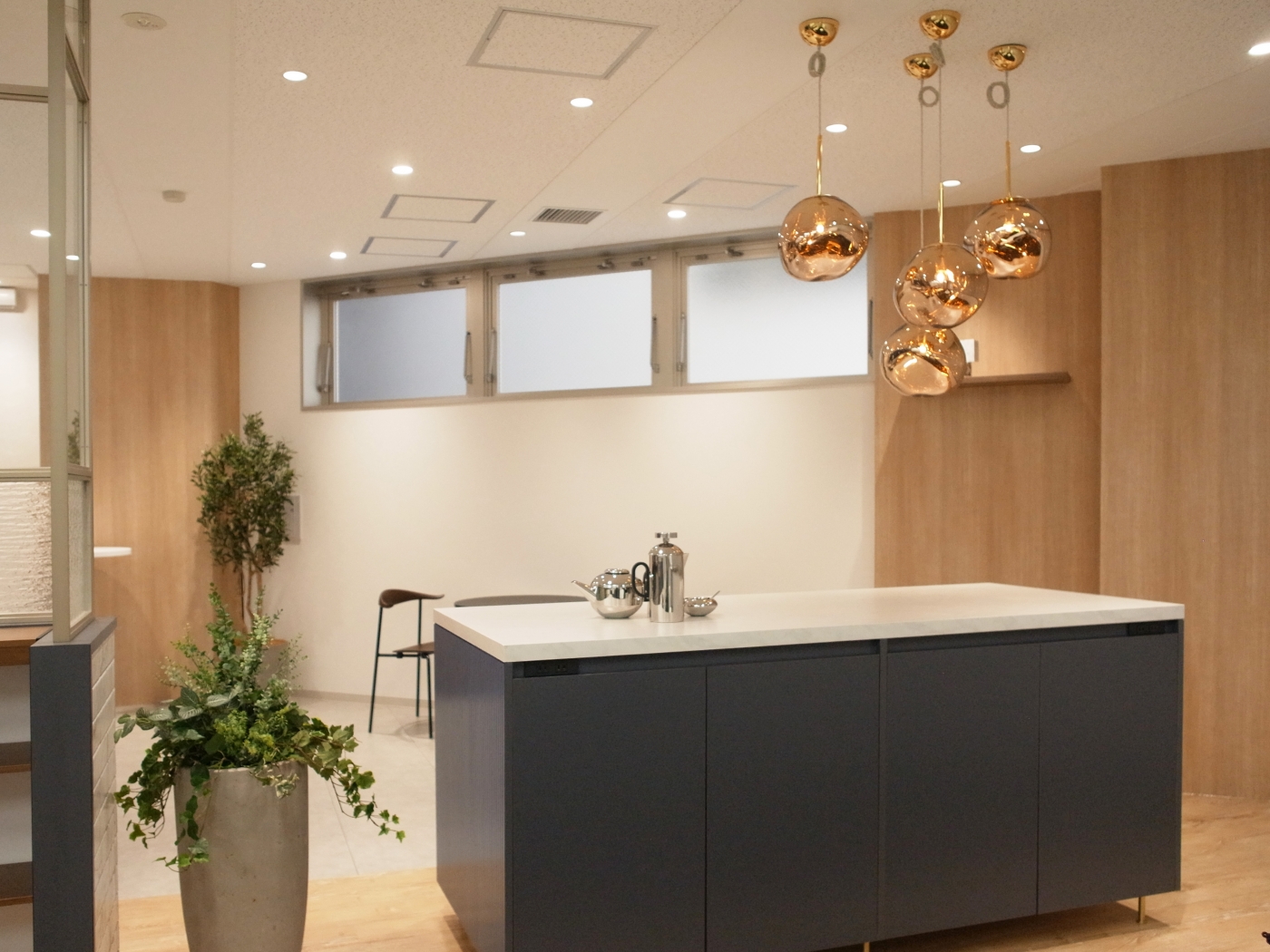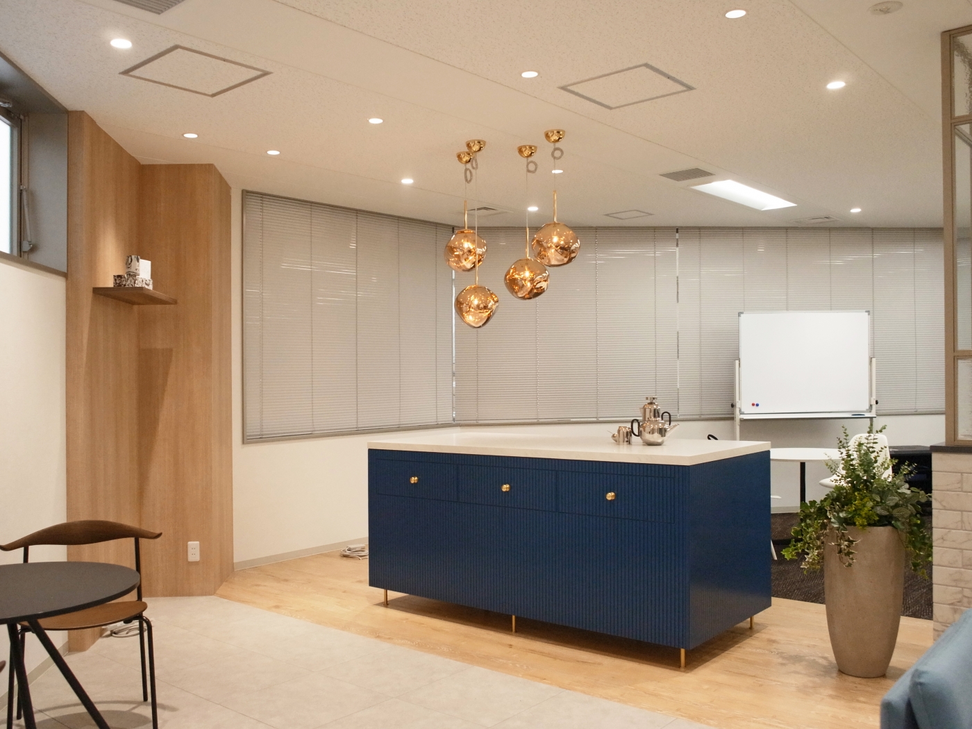 福岡オフィスの開設プロジェクト。東京本社移転においてオフィス環境の全体的な見直しを図り、新たな拠点もそれに連動したデザインになっています。本社ともにエントランスはエレベーターホールで完結させ、オフィスに入るとデザインが広がるフリースペースにしました。専有面積を社員に最大限提供し、快適な空間づくりを行っております。また、デザインも内装だけでなく小さな小物までこだわり、オフィスに入った瞬間に驚きと感動を提供します。