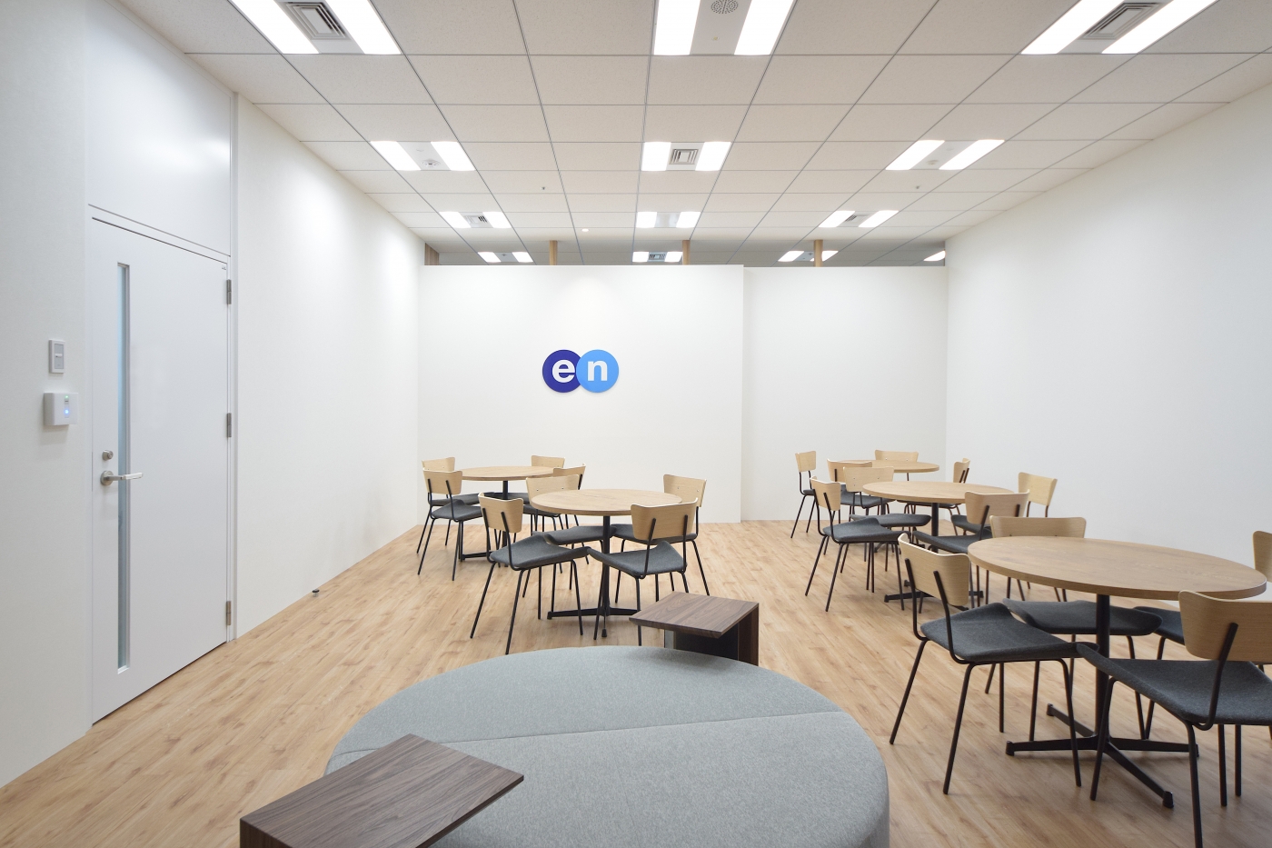エン・ジャパングループ一部部門のご移転をお手伝いしました。ブランド企画室の皆様とのお打合せの中ではエン・ジャパンらしさをどう表現するかを議論しつつも、固定観念に捉われずに働きやすさを追求しました。大まかなデザインが決まってからは、プロジェクトメンバーの皆様と、実際に使用する壁紙や什器を納得のいくまで時間をかけて選定しました。エントランスは白ベースでロゴが映えるようにシンプルな仕上がりで、会議室にはイメージカラーの青色と水色をあしらい、エン・ジャパン様らしさを表現しています。ワークスぺースには社内勉強会や社外向けセミナーもできる広いスペースを設けました。窓際にはベンチ席や柱を活かしたデスクを設置し、自席以外での多様な働き方も可能なスペースとなっています。