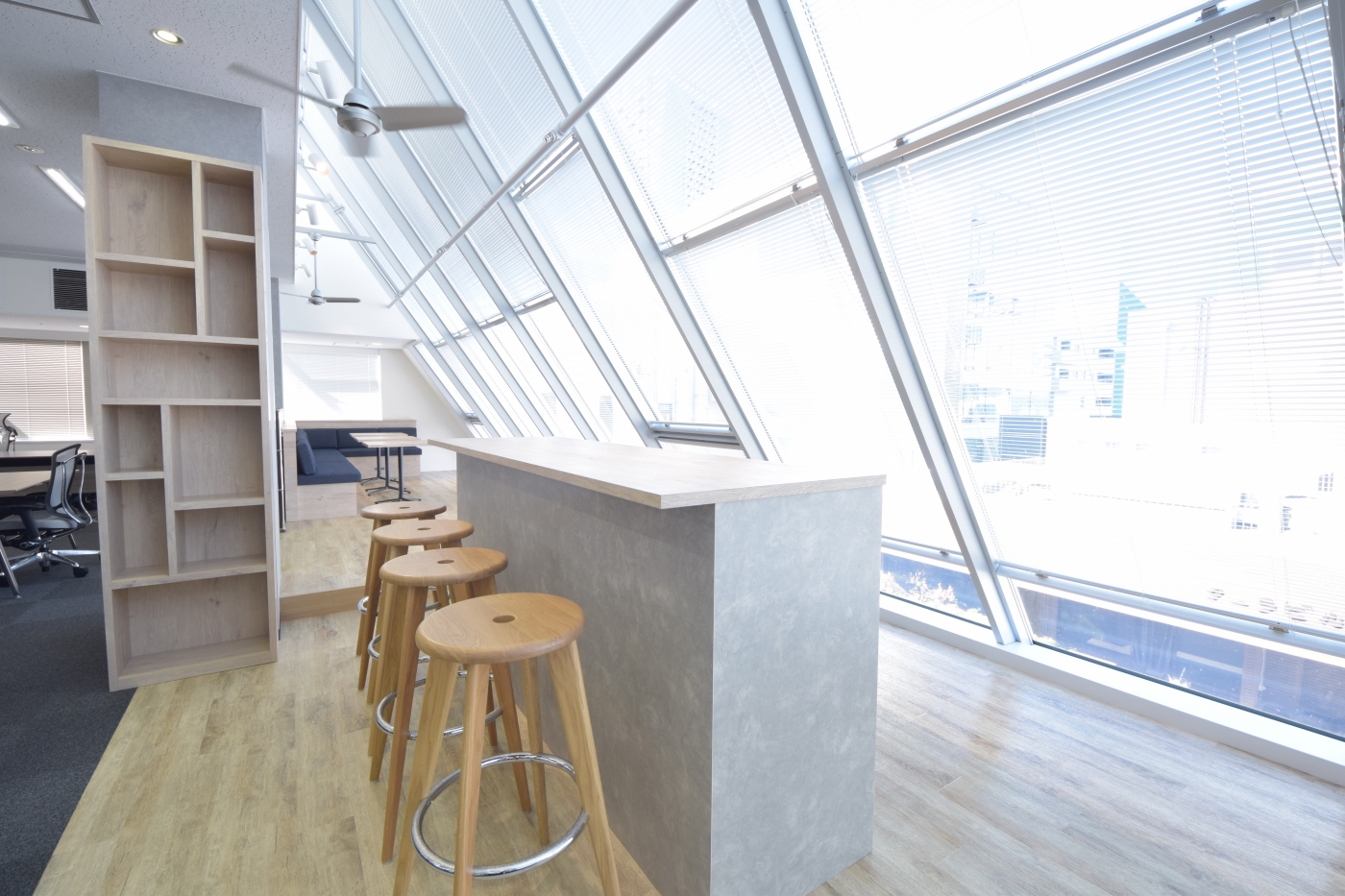 一面窓ガラスという開放感を活かした、明るく居心地の良いオフィス
