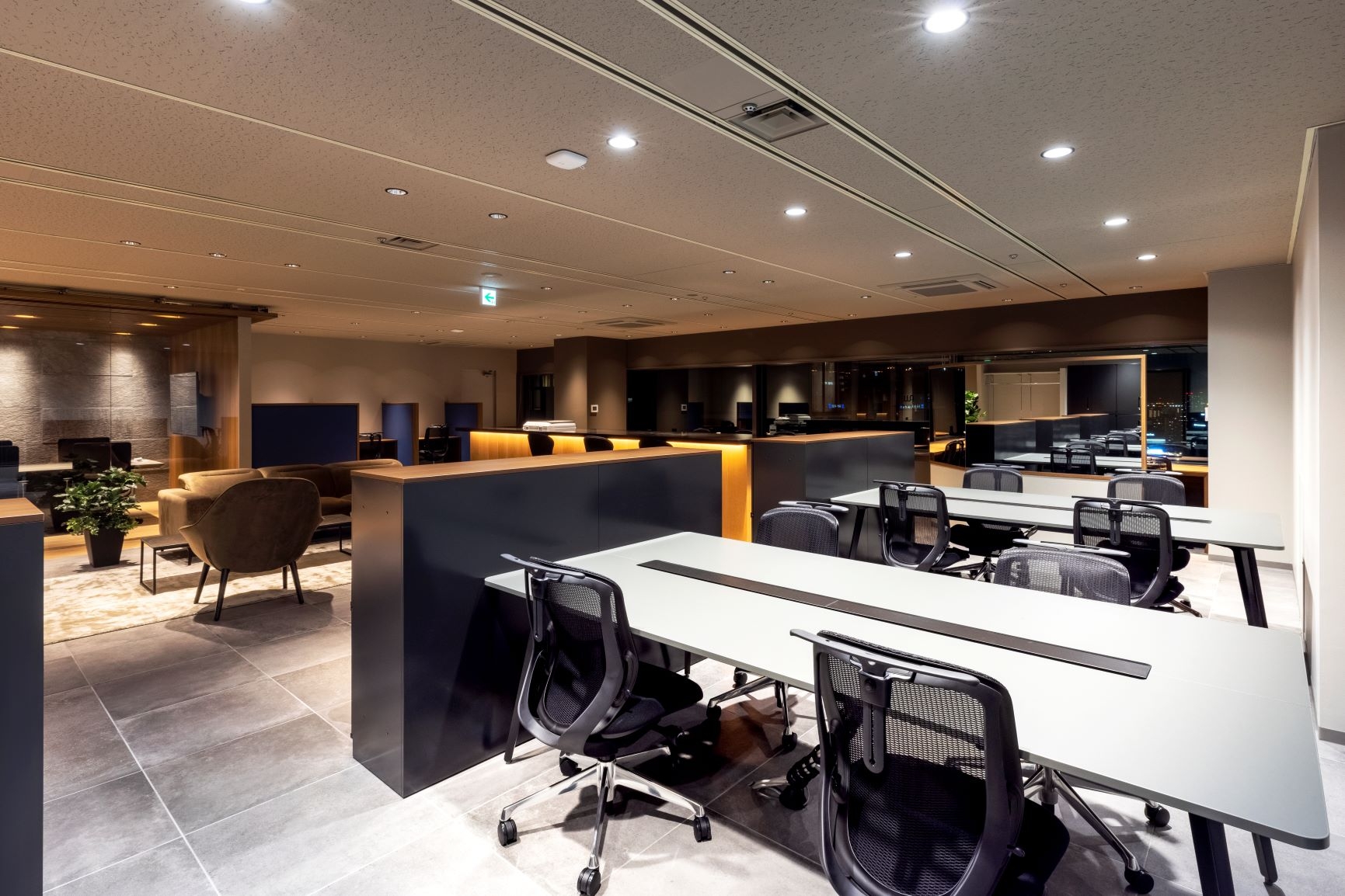東京オフィスの開設に続いて、大阪オフィスのご移転もお手伝いさせていただきました。採用強化を目的にしたプロジェクトで、来客者に対して驚きと、ここで働きたいと思わせるオフィス空間を目指しました。フロアの中心部にラウンジとバーカウンターを設けることにより、自然と人々が集いコミュニケーションを生み出すことが狙いとなっております。オフィス家具とリフレッシュ家具の色味のトーンを揃えることによって統一感を出し、また長年使うことを考え、耐久性も意識した家具の選定をさせていただきました。ビル19階から見られる夜景も素晴らしく、オフィスに付加価値を加えるとともにデザインにも魅了されるオフィス空間が完成いたしました。