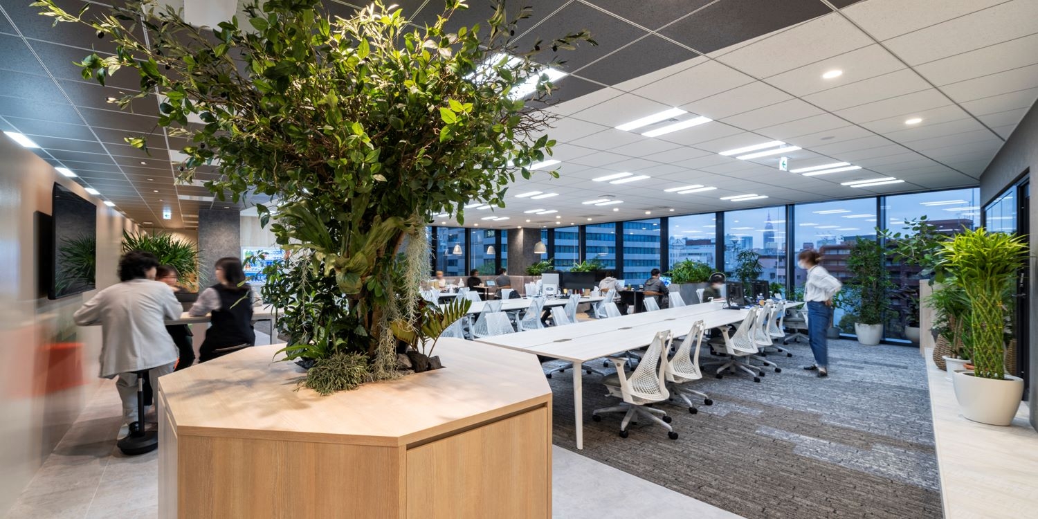 家のような居心地の良さをデザイン。グリーンを多用した開放的なオフィス