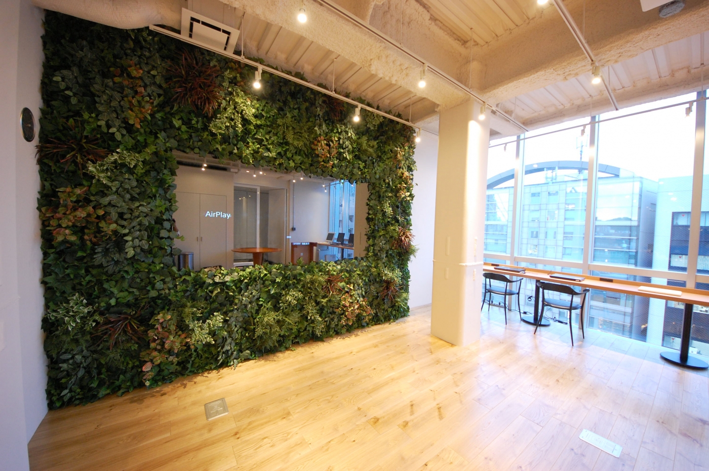 グリーンウォールがあるクリエイティブラウンジ