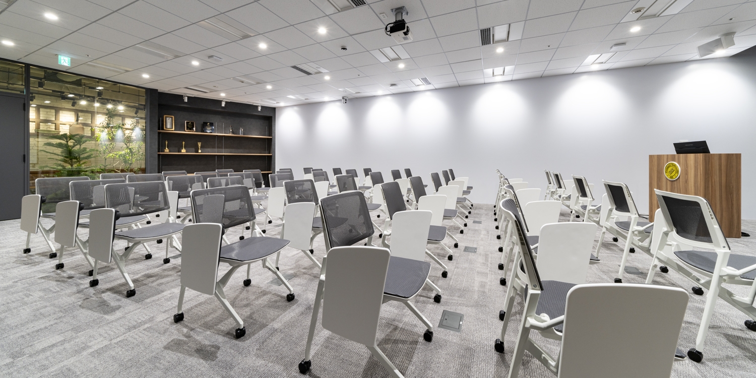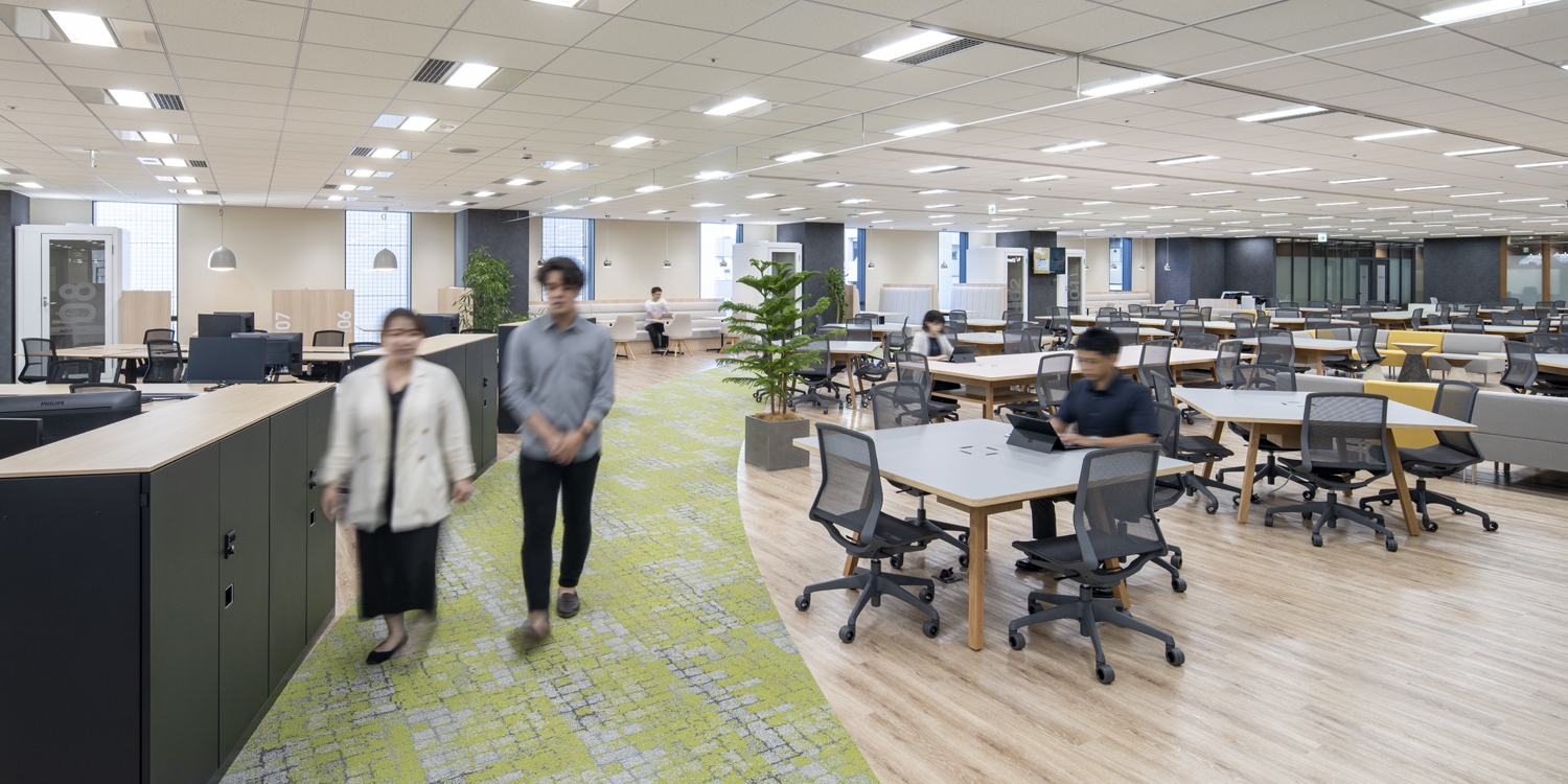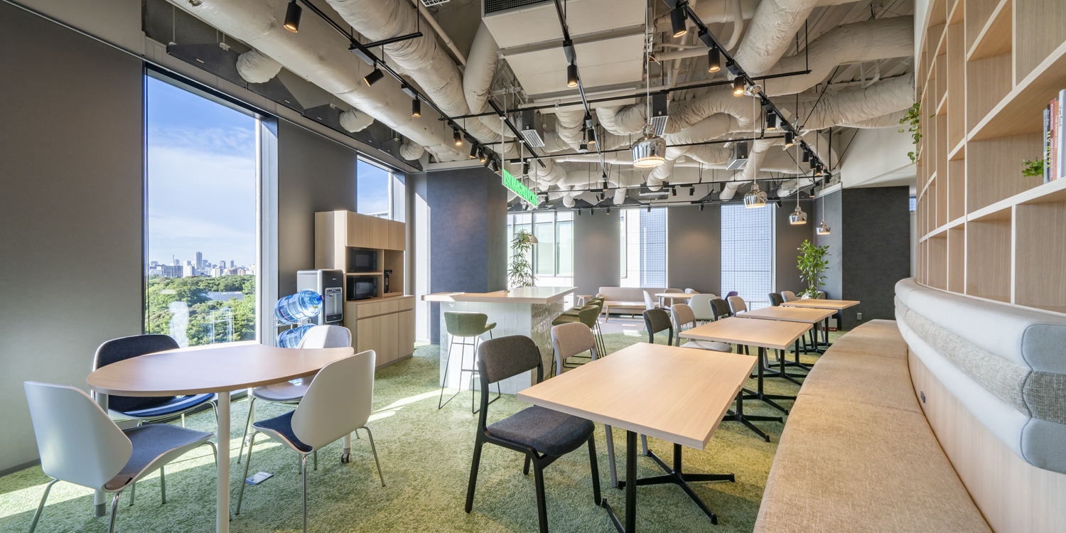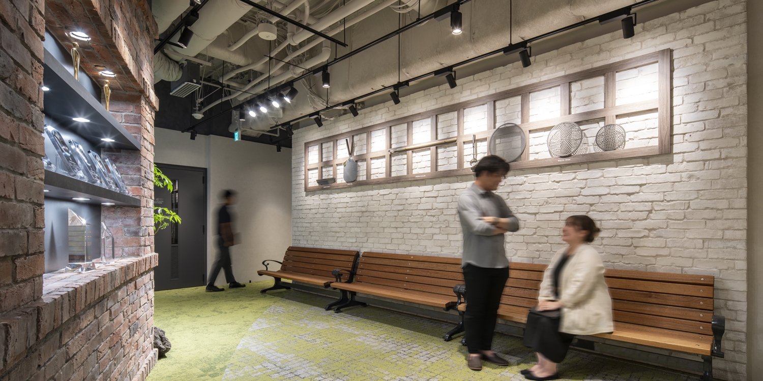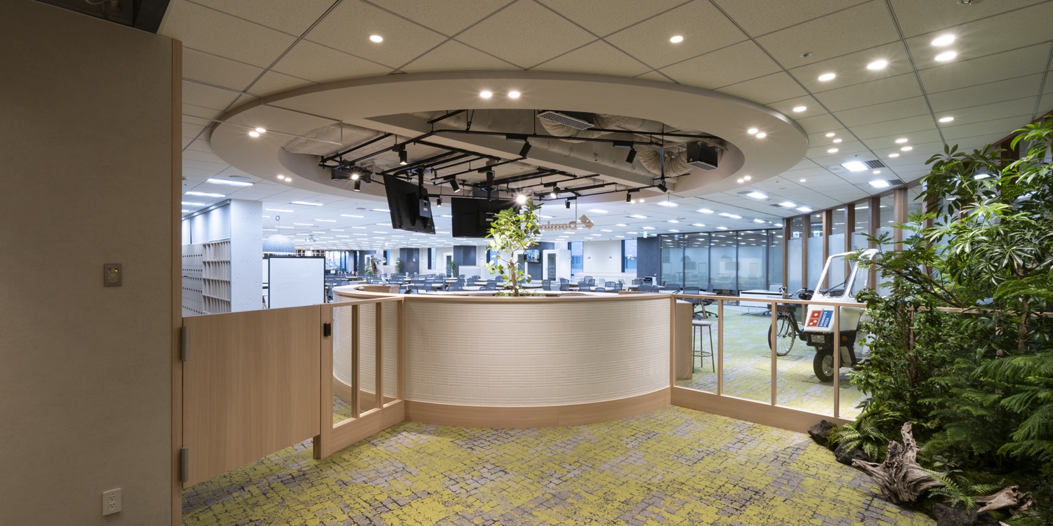 ドミノ・ピザジャパン様のパーパス&ビジョン「ピザでつながる」をベースに、社長メッセージ、バリュー、カルチャー、メンバーとの関係性等から、オフィスのありたい姿をイメージしました。コンセプトは「FAMIGLIE(家族のイタリア語)」とし、家族があつまるように自然体で、朗らかに。変化し、成長し、継承していく集いの場を実現するオフィスをデザインしました。創業当時の街やピザ窯を連想させるブリックタイルを使用し、ロゴやデジタルサイネージを点在させることで、社員はもちろん、来社するすべての方へ向けてブランドの発信ができるオフィスです。グリーンは本社があるアメリカ・ミシガン州のイメージで取り入れ、都会的なオフィスの中でも自然を感じられます。エントランスすぐにコワーキングエリアを設置し、フランチャイジーともコミュニケーションがとれるようにしました。ワークスペースは、フレキシブルに働けるようソロワークエリア・チームワークエリアを混在させたハイブリットオフィスとして構成し、人数や使用方法の変化にも対応できるよう設計しています。周囲にはホワイトボードデスクなどを設置し、すぐにミーティング、ブレストができる環境を整えました。プロジェクトごとに集中してディスカッションできるプロジェクトルームも複数設けています。ドミノピザ・ジャパン様の第2の我が家として、企業成長やシナジーを生み出す場となるようデザインしました。