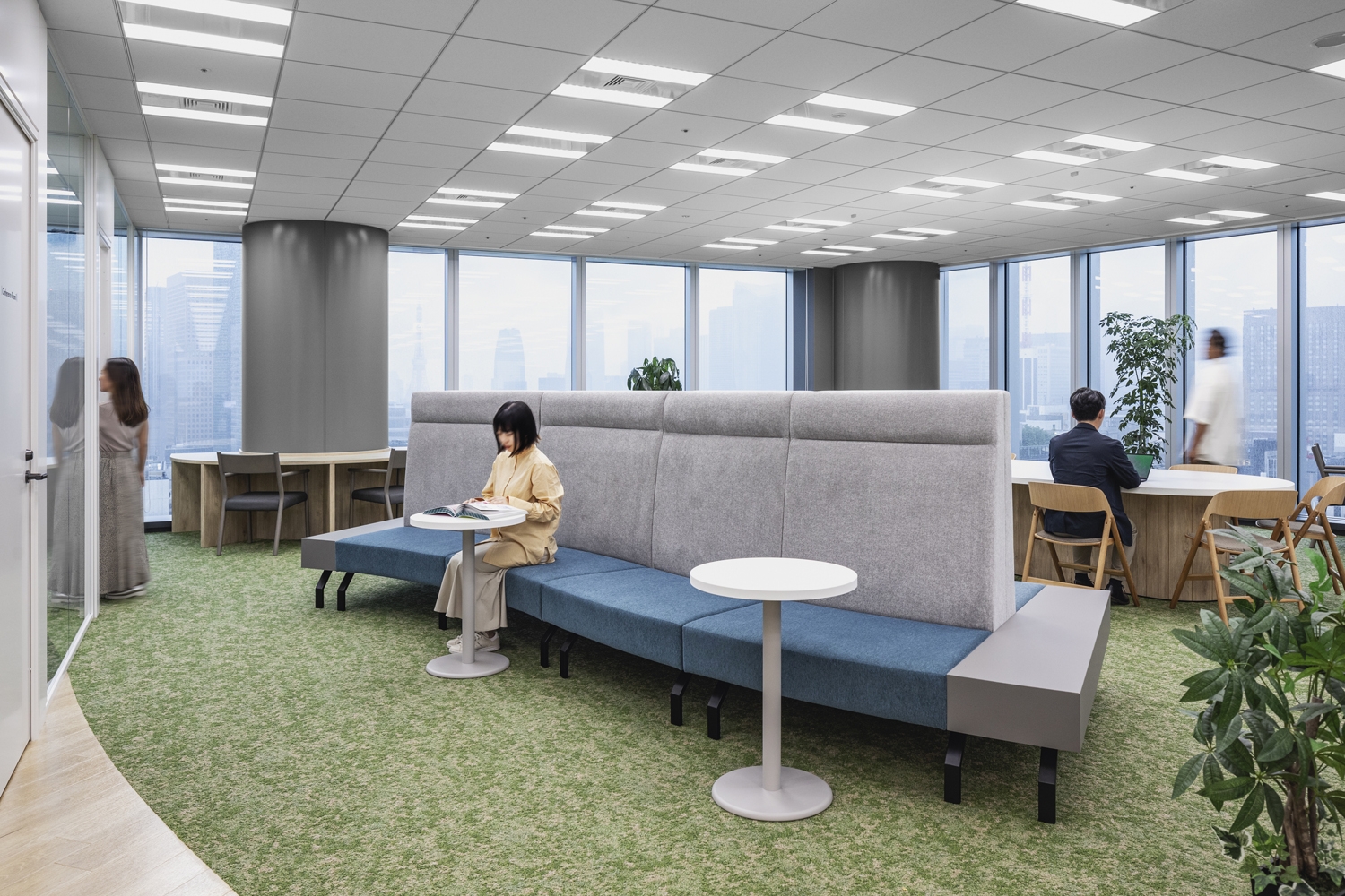 また、前オフィスでは不足していたリフレッシュエリアを充実させることで、 社員の皆さまがリラックスできる場所が増えました。 メリハリをつけて仕事に臨むことができるようになり、生産性の向上に寄与しています。