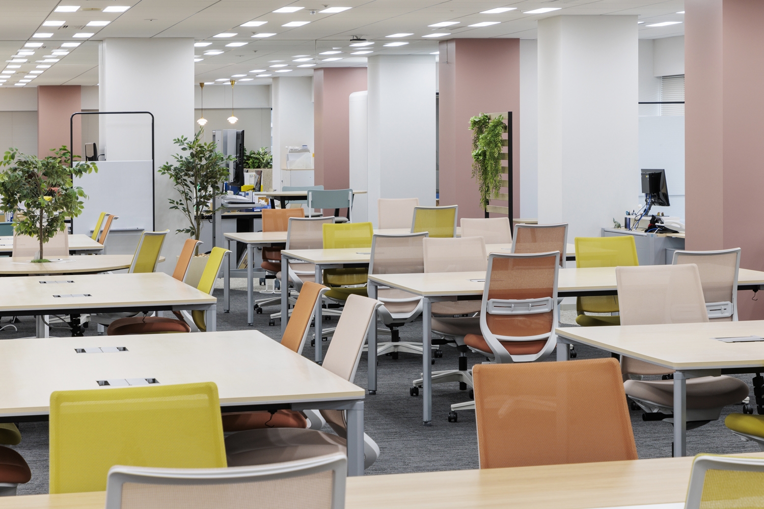 元々はビルの空調工事にともない、館内移転が生じたことがきっかけでスタートしたプロジェクト。コロナ禍が明けたことでリモートワークから出社が基本のスタイルに変わり「自主的に出社したくなるオフィス」をキーワードに移転プロジェクトが発足しました。オフィスに同じ志をもつ仲間がいるからこそ、オンラインでは感じることのできないリアルなコミュニケーションを促し、一体感を醸成するような空間を目指しました。