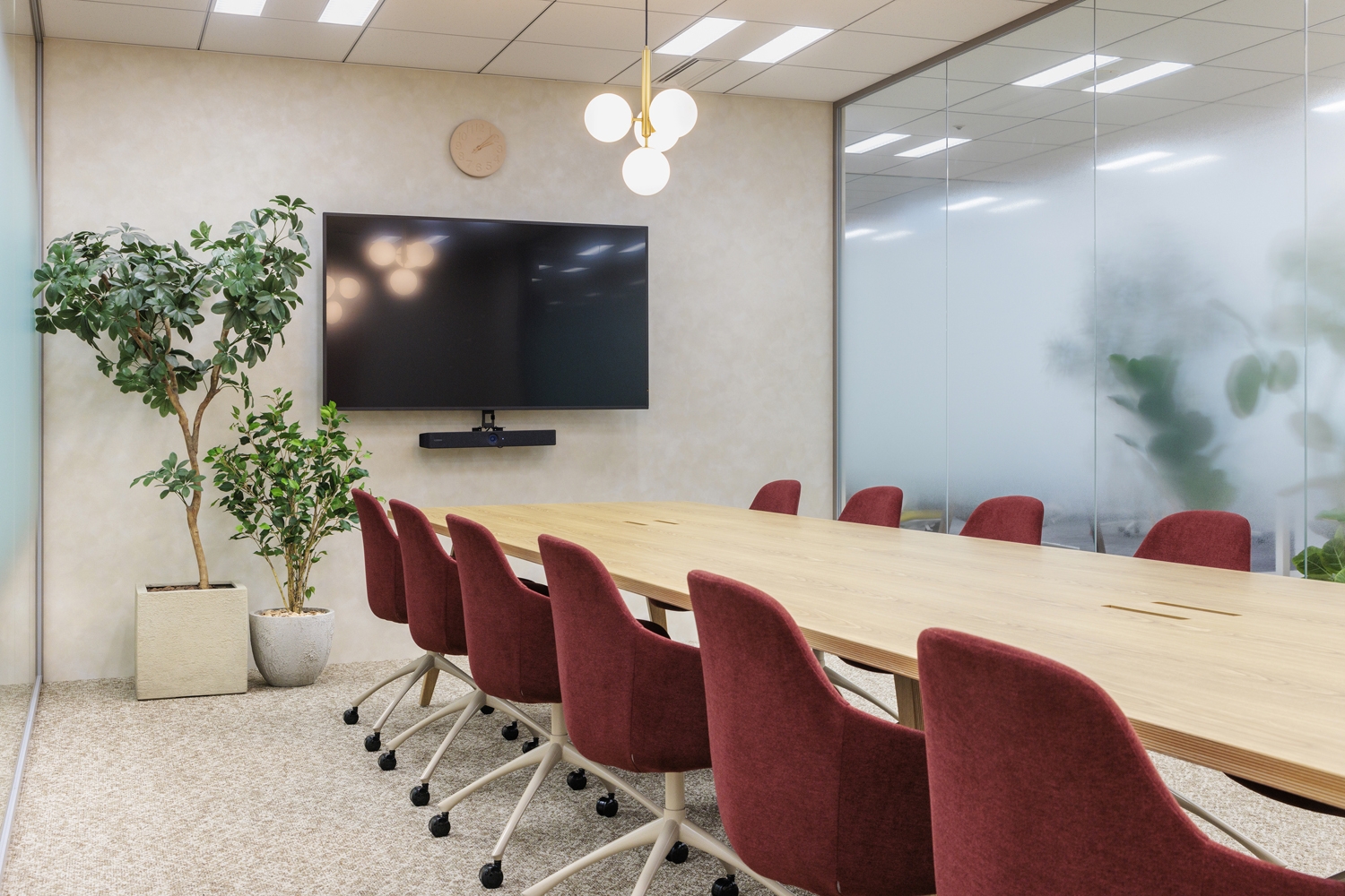 コロナ禍の影響で在宅勤務をする社員の割合が増え、コミュニケーションの減少を課題に抱えていたイープラス様。社員同士の出会いのきっかけとなるような大きなフリースペースをつくることで、リアルなコミュニケーションが生まれ、チームの一体感につながり、人生を豊かにできる”何かプラスになる“ような場所になったらという思いでレイアウトしました。コンセプトは『ReUnited』。新しいオフィスを中心に再び団結を強め、新たな時代をリードするという意味が込められています。デザインはイープラス様らしいピンクや赤のカラーをベースに明るく華やかなビタミンカラーを取り入れることで、賑やかさを感じる空間を演出。また、入居する恵比寿ガーデンプレイスの外観からつながるようなイメージをデザインで表現しています。他にも、丸みのある家具を取り入れることで全体的に柔らかい空間に仕上がっていることも特徴です。
