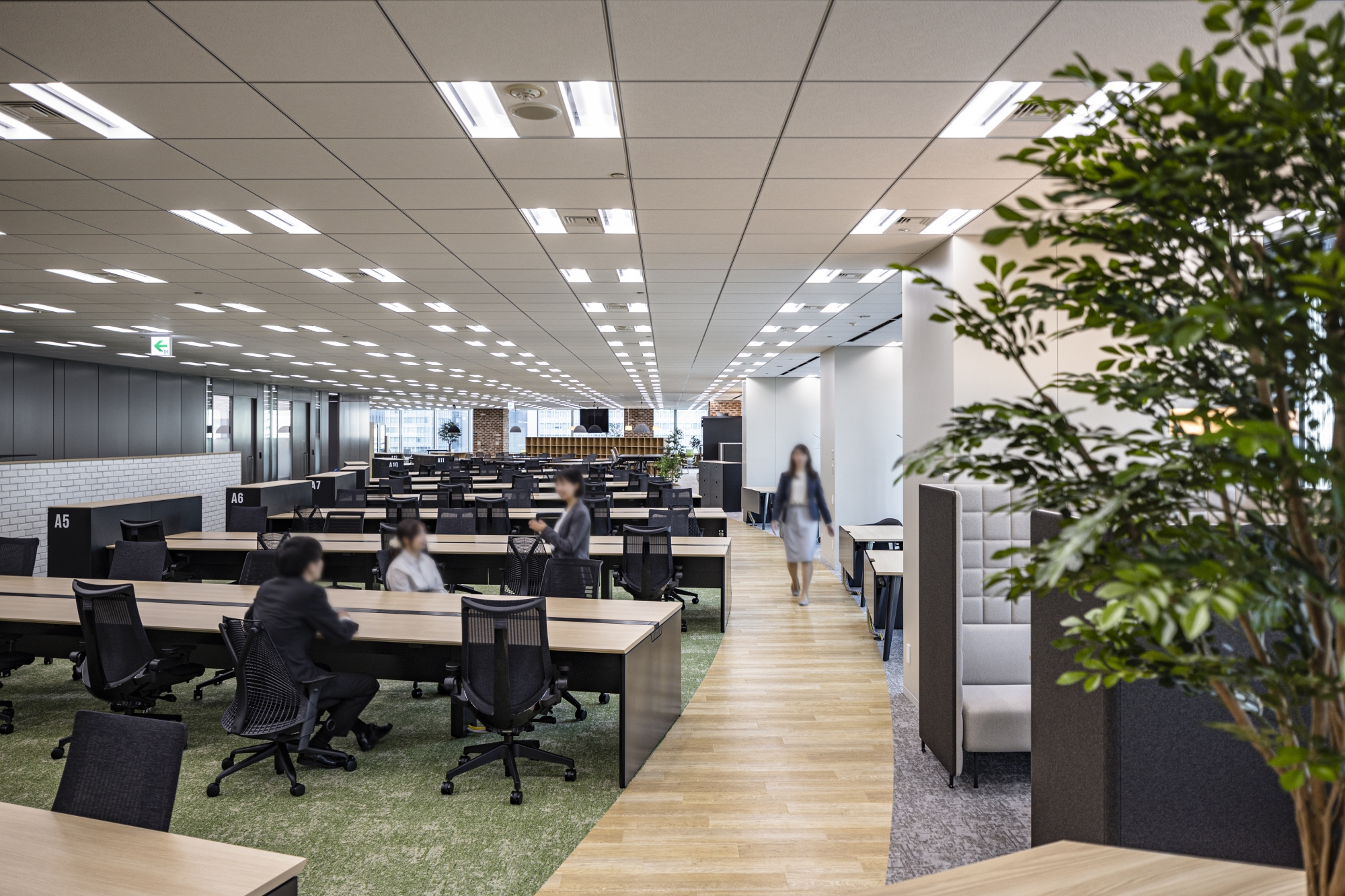 ご移転後、お客様からは「フリーアドレス席により、整理整頓の習慣がついた」「以前は個室の部署に相談に行くときは緊張したが、フリーアドレスになって相談しやすくなった」「事務所内で昼食をとる場所にも困らず、面積の削減を感じない」等の声をいただきました。
