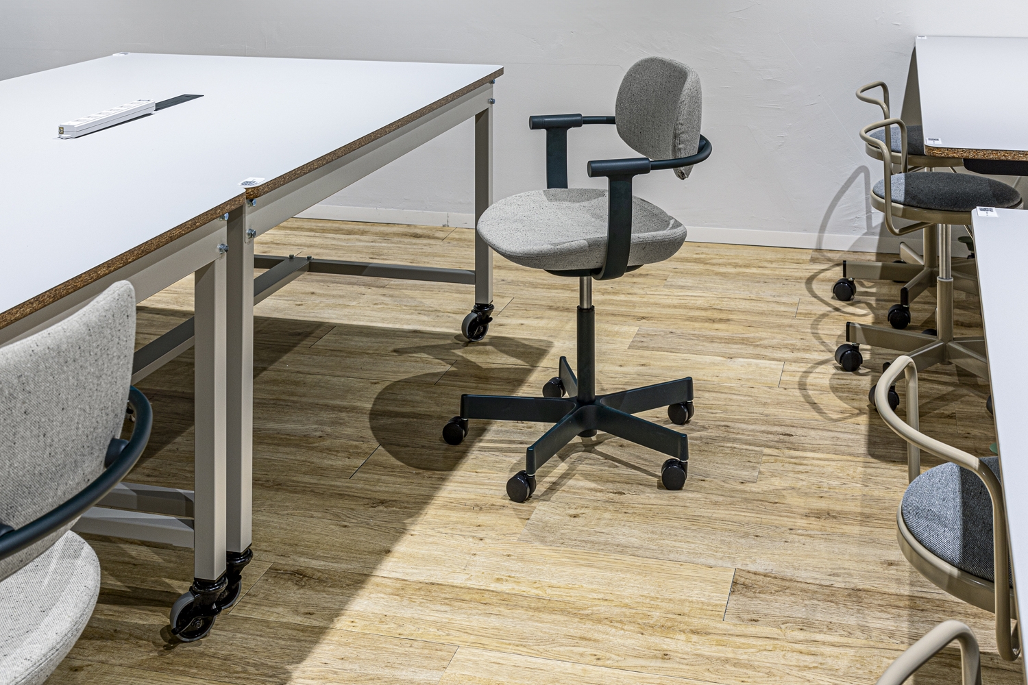 ワークスタイルはフリーアドレス運用とし、コミュニケーションを重視しつつも、一部はエンジニアによる実験スペースとしてレイアウトし、研究所のように没頭して働くことができるようにしています。家具も敢えてスチールなどのインダストリアルな雰囲気を採用し、見た目からも研究所を演出しています。