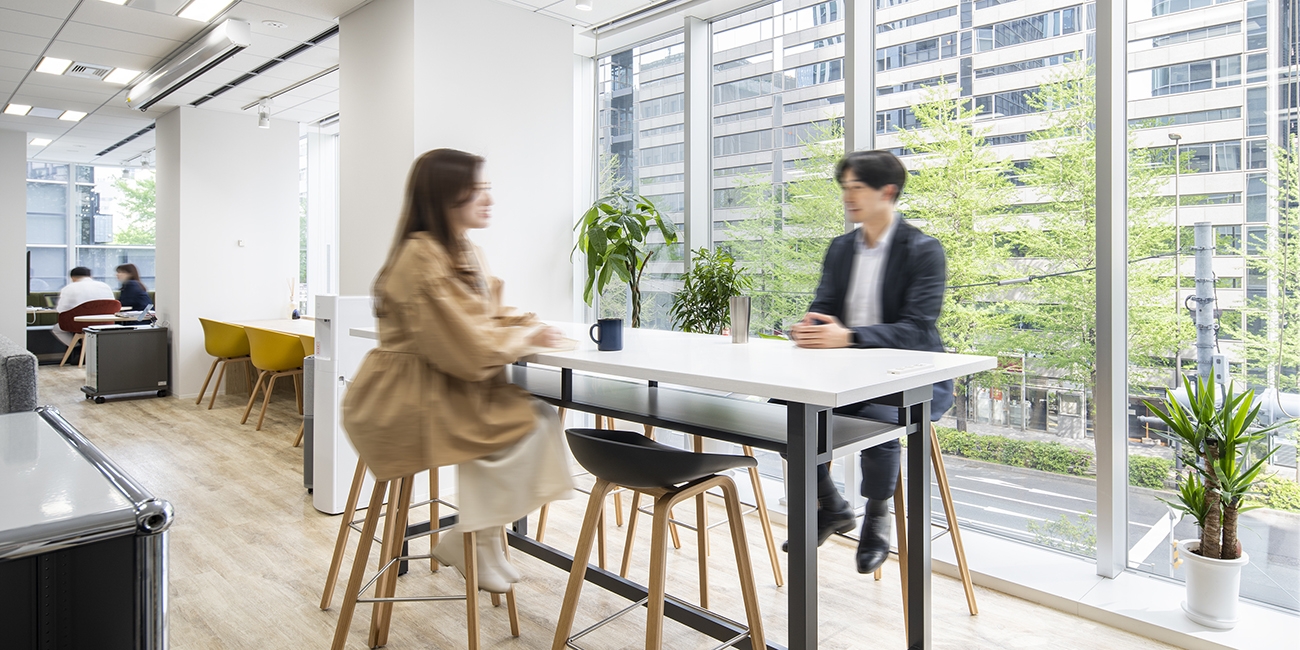 社員エンゲージメント・モチベーション向上を目的としたオフィス移転プロジェクト。自社のサービスに誇りを持ち社員の皆さまがモチベーション高くはたらくことを大切にする企業様で、自社サービスを印象づけるデザインを随所に施しています。エントランスには大型LEDビジョンを設置し、訪れる方はメディアデプト様のダイナミックなメディアサービスを直に感じられます。執務エリアの近くにリフレッシュスペースをレイアウトし中央にプロジェクターを設置することで、業務だけでなく社内イベントにも利用できる多用途なエリアとしました。インテリアはアーバンで洗練された印象になるよう統一してデザインし、大都会の景観づくりも担う企業のアイデンティティーを表現しました。