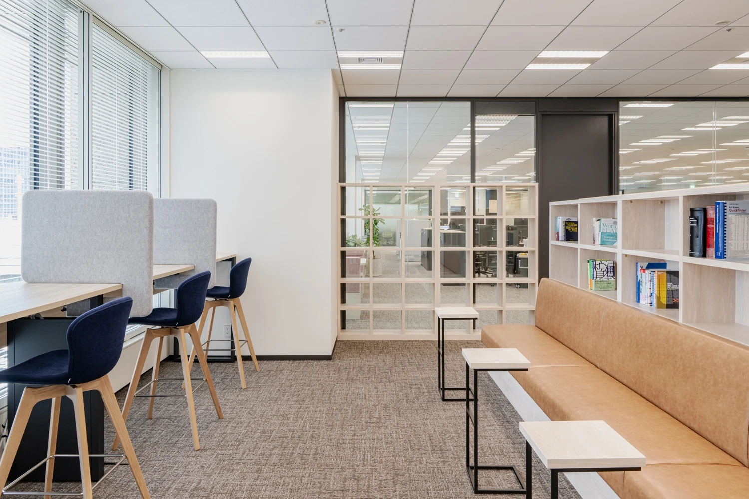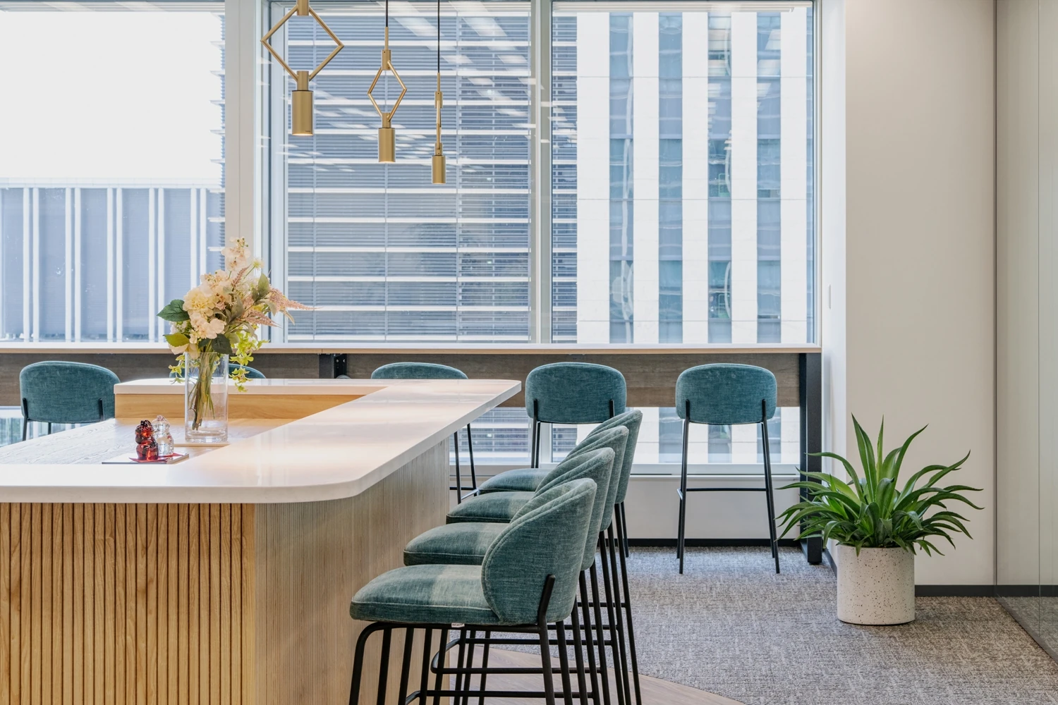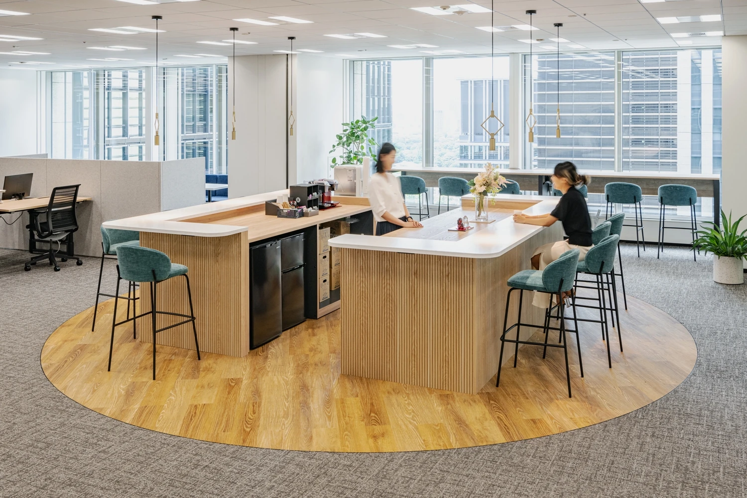はたらき方のアップデートとともに“Vialtoらしさ”を感じられるオフィス構築を目的としたオフィス移転プロジェクトです。社内コミュニケーションが活発でイベント開催も多く、フラットな組織ということで「交流・出会い」を加速させるブランディングオフィスを目指しました。はたらき方においてはABWを導入し、「Community(人が集い活気あふれるエリア)」「Co-creation(部門を超えた連携を促すエリア)」「Drive(個人の生産性を高めるエリア)」の3エリアで空間を構成しました。さらに「CROSSOVER ROAD」で各エリアをシームレスにつなぎ、個人とチーム双方の生産性を高める仕組みを施しています。インテリアデザインでは、カラーや素材、仕上げでブランドを表現。エントランス壁面には国産木を用い、パントリーカウンターにはリブ材を採用しました。随所にグリーンとコーポレートカラーを施し、オフィスから視覚的にブランドを感じられます。ミーティングスペースには松竹梅をプリントしたクロスや和紙のアートを設け、外資系企業でありながら日本らしさを感じられる空間となっています。