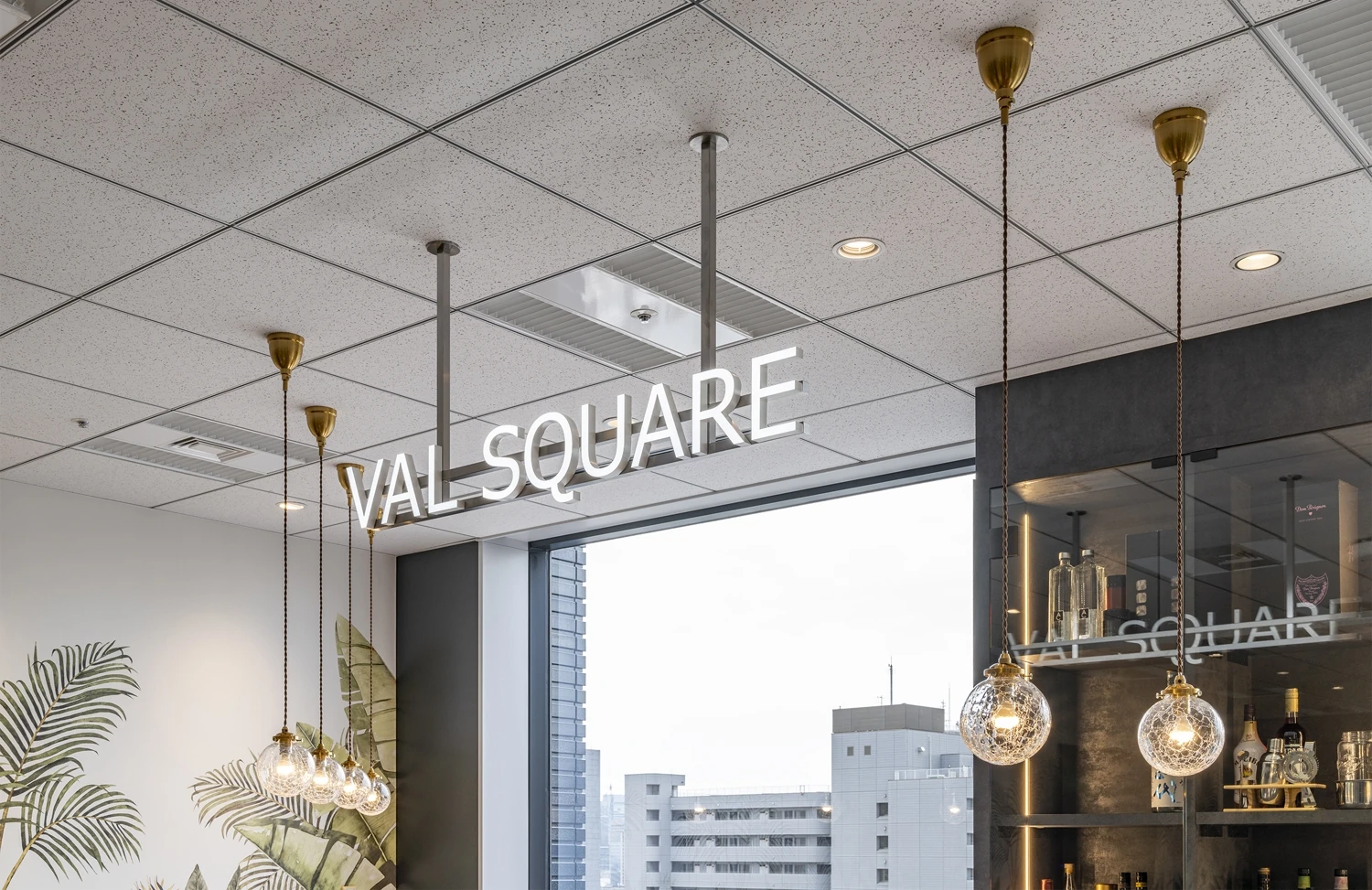 採用強化とコミュニケーション活性化を目的としたオフィス移転プロジェクト。「自然を感じられるオフィス」というテーマのもとプランニングを行いました。デザインはエリアごとにテイストを変えており、カスタマーエリアはアースカラーをベースにグリーンの映える空間に。社員のワークエリアはペールトーンのカラーをベースに、やさしく、清潔感のある空間として設計しています。エントランスからリフレッシュエリアにつながる動線は川の流れをイメージし壁を斜めに構成することで躍動感を演出しつつ、シンプルにグリーンが映えるようデザインしました。全体的に回遊動線を意識し、ガラスで区切ることで各々の空間が視覚的につながるように計画しています。ワークエリアの個人ブースは有機的な形状とすることでオフィスのシンボルとなるようデザインしました。小上がり席は建物最上階からの素晴らしい眺望を取り込んでおり、スカイビューラウンジとして憩いや集中作業の場としています。どのエリアにも植栽を配置し、自然を感じながらはたらくことができるようにしました。リフレッシュエリアでは定期的に社内イベントを開催し、コミュニケーション醸成の場としても有効活用できるオフィスです。