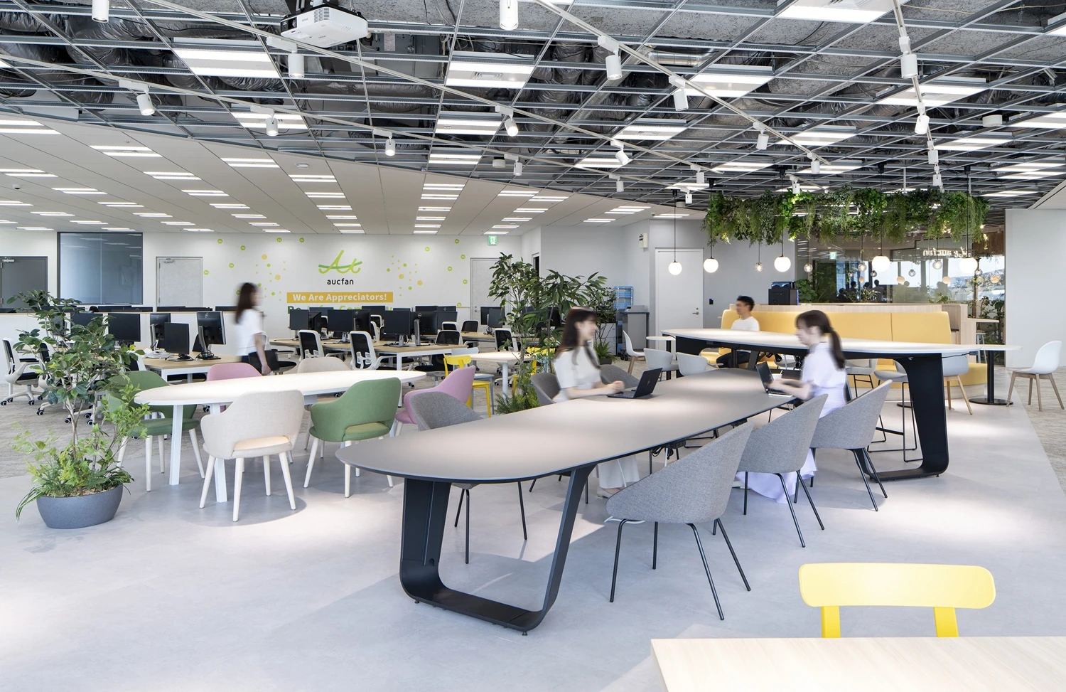 アフターコロナにおけるオフィス規模適正化を目的としたご移転。出社・テレワークのハイブリッドワークを継続しているため、少ない出社機会の中でも社員同士のコミュニケーションを活性化させたい課題がありました。面積は前オフィスの50%とした一方、デザインと機能はより満足度が高くなるようにし、出社時にストレスなくウェブ会議が実施できる場所の設置や、家にはない働きやすさを体感できる環境を目指しました。