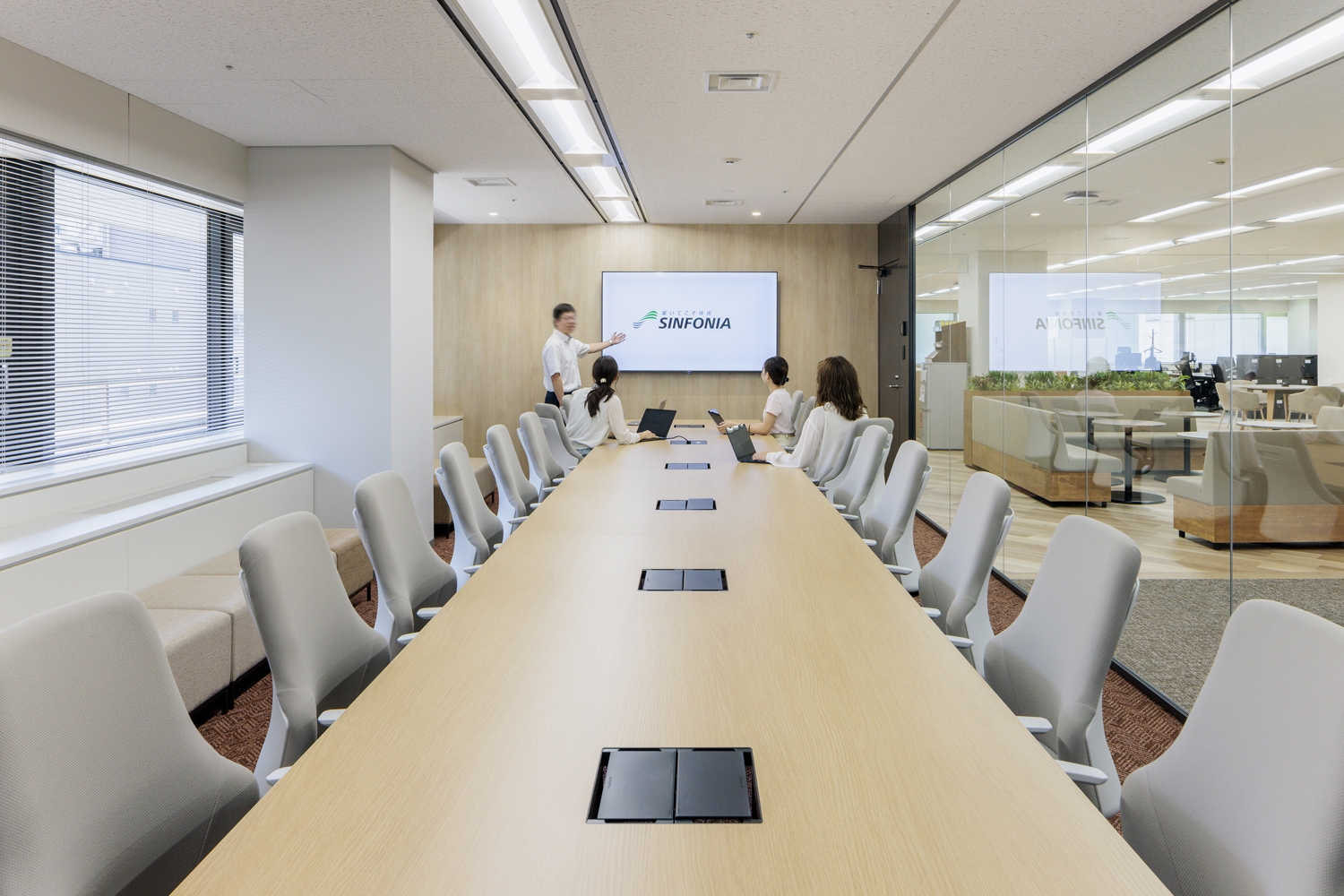『響いてこそ技術』をテーマに、創業から100年以上、人から宇宙まで豊かな暮らしと社会の発展に貢献しているシンフォニアテクノロジー様。東証プライム上場企業としてふさわしいワークプレイスの構築を目指しました。従来のオフィスフロアをエントランス・来客エリアとして改装。さらには同ビルにて増床し執務エリアを拡大。大幅な働き方のアップデートを行いました。