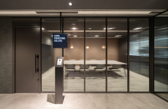 オフィスコンセプトは『refine』。「旅」というテーマから、時代の移り変わりを表現。荒々しいインダストリアル調のデザインから、現代に向け次第に洗練され、磨かれていくモダンデザインを1つの空間に落とし込みました。エントランスから続く広々としたラウンジは、社員同士の交流やイベント開催の場としても活用できる開放的な空間です。執務エリアには集中して働ける環境を整える一方で、クールダウンスペースやカフェスペースを設け、多様的な働き方に対応できるように工夫しました。黒スチールやエイジングのかかったブリックなど、本物の素材がもつ質感を活かしながら、インダストリアルさを表現。エントランスからワークスペースにかけては、ラフなインダストリアルからモダンインダストラリアルへと切り替わるように素材の表情を意識して空間を構成しました。内装デザインのコンセプトに沿って、インダストリアルなイメージを基調としたネオンサインおよびルームサインのグラフィックも製作。エントランスおよびカフェスペースのネオンサインはアンダーグラウンドな雰囲気を意識した印象的なデザインにしています。