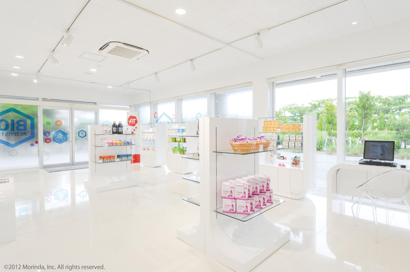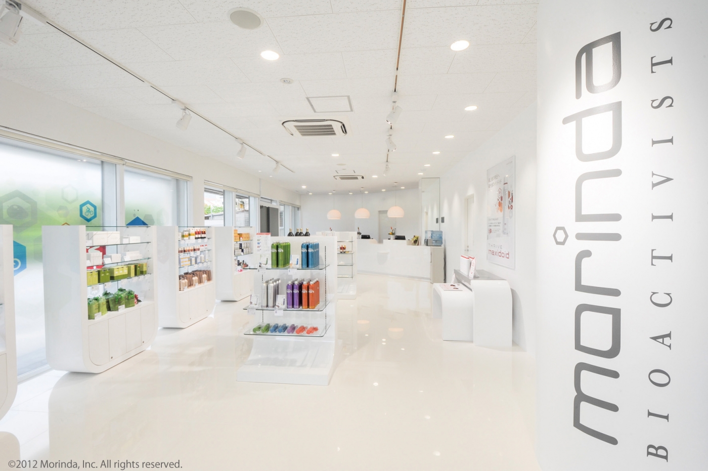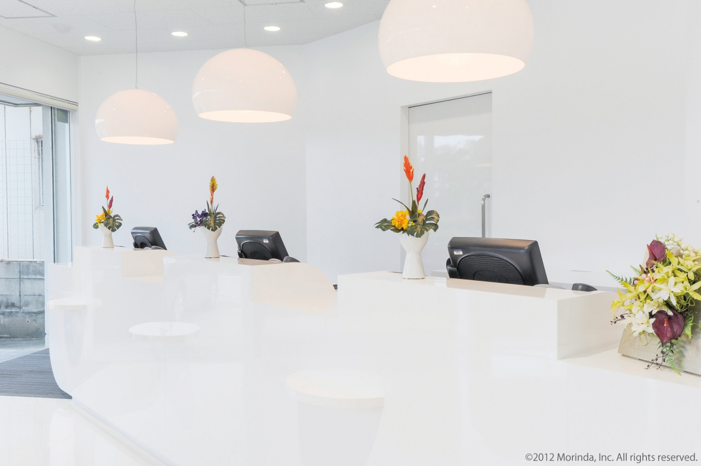 躍動感のある有機的な美しさ。 シンプルで上質な空間。 新しい社名と製品群にふさわしいのは、そんなアクティブで美しい曲線をもちいたデザイン。 さまざまな素材の白を基調として、クールグレーとアクセントカラーで空間を構成します。 新たな驚きに満ちた morinda japan がここ、沖縄からはじまります。