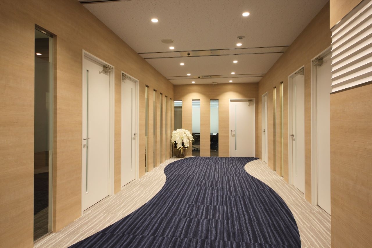 水とエコをテーマに一新されたロゴマークからインスピレーションを受け、お客様をお出迎えするエントランスには、艶やかな白い壁面とシメントリの木柱で構成されています。シンプルな空間だからこそサインがインパクトを持ち、ロゴマークが際立つようなデザインとなっています。各会議室に続く通路は広めに取られ、水が流れるような床のデザインに、奥へと誘われるような感覚になります。各部屋にはコンセプトを持たせ、使用用途に応じてお部屋を選んで頂き、幾度と来訪される方々に毎度、新しい発見をして頂けるようなスペースとなりました。