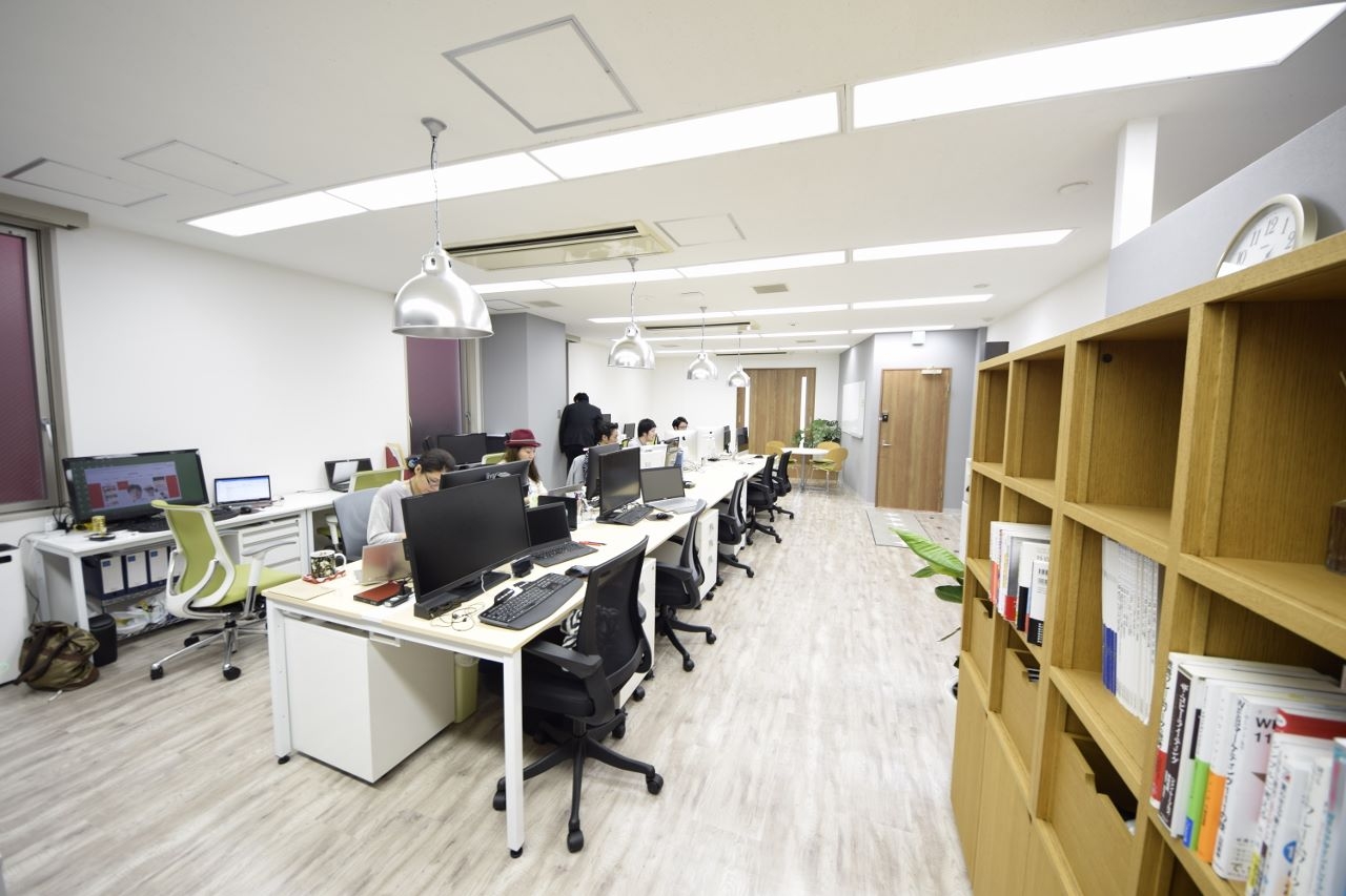 明るくあたたかな”ウズらしい”空間をご要望いただきご提案させていただきました。インパクトのあるロゴのステンシルがエントランスで迎えてくれます。畳とちゃぶ台の和テイストな会議室は他のスペースから床が一段上がっており、くつろぎ空間としてリフレッシュスペースも兼ねています。ワークスペースは全面床を木目に貼り替え、ポイントでグレーの壁を設けることでメリハリをつけています。象徴的なペンダントを配置することでカフェのような落ち着いてお仕事していただける空間となりました。