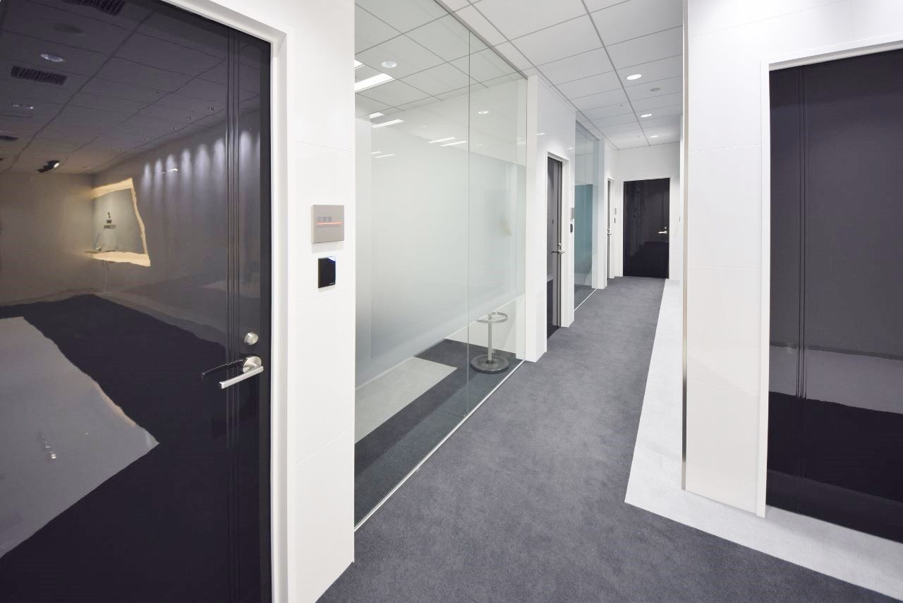 堅実な成長を続けるトランコム様。名古屋本社、大阪オフィスに続き、東京オフィスの移転プロジェクトを実施しました。右肩上がりの成長とスピード感、疾走するトラックを表現したエントランスデザインは全拠点共通としながらも、タイルやガラスなどエリアごとに素材感を変えることで個性を表現しています。ホワイトとブラックでメリハリを利かせた空間、上質なカーペットや鏡面仕上の扉、照度と角度にこだわった照明計画などで表情の豊かさと高級感を追求しました。それぞれのオフィスではたらく人々が誇りに思え、さらに組織として共通のアイデンティティを持てる空間をデザインすることで、さらに巨大化し全国展開を進める会社に一体感をもたらします。