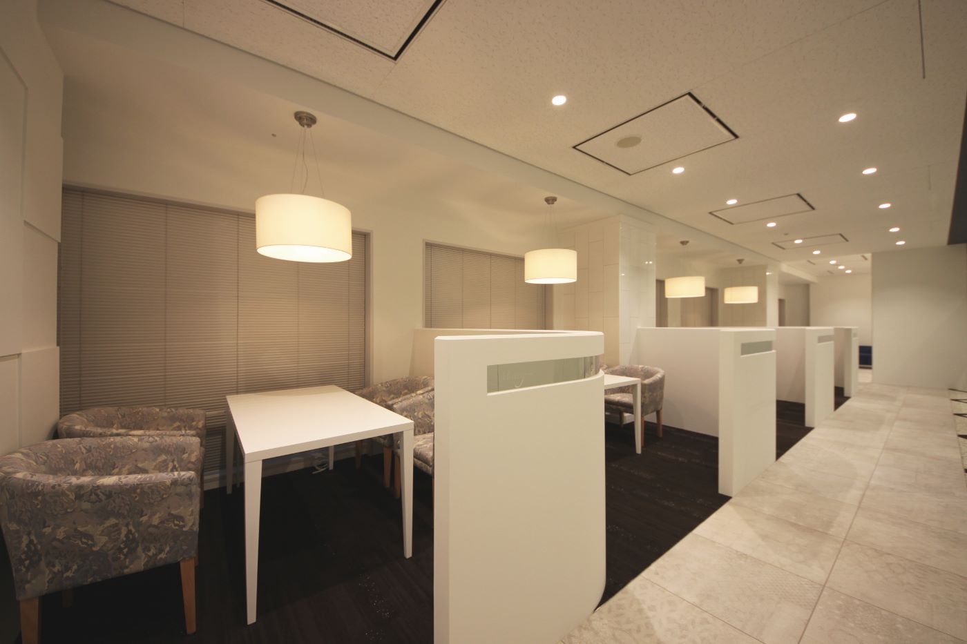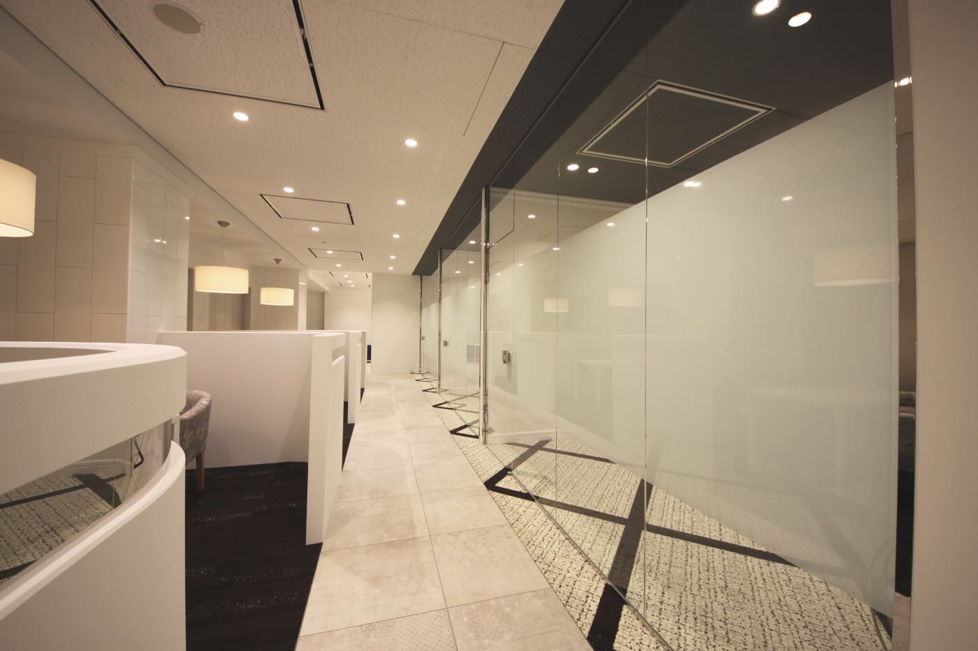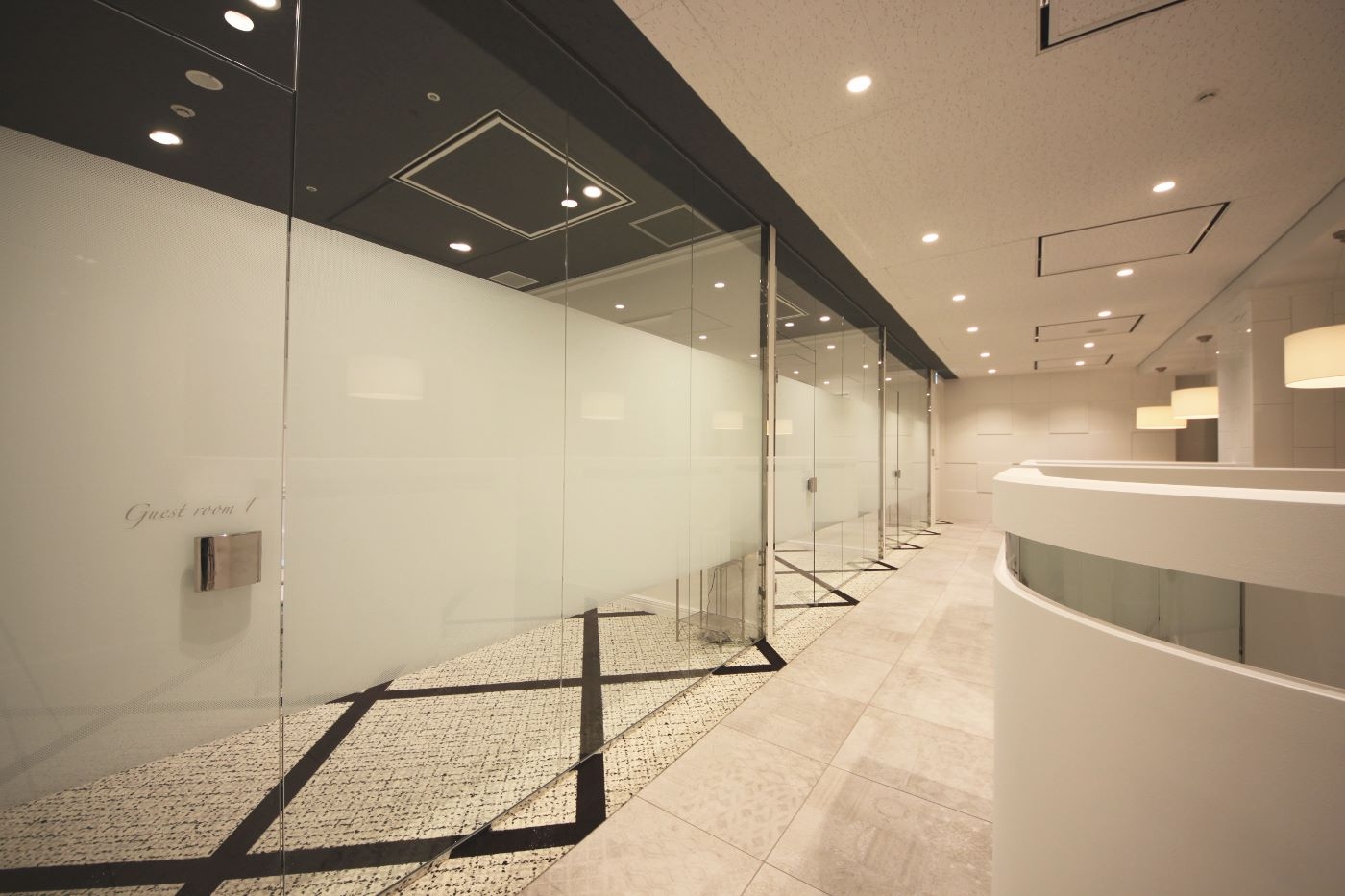 「全社員にとってシンボリックであり、企業イメージを活かした憧れの的となるような本社オフィスを作りたい。」そんな想いのもと、お客様とオフィスを考えました。上質な補整下着を扱い、女性がメインで活躍されているマルコ様。気品、女性らしさ、上質、清潔感を演出するために、基本の色調を白とし、床材を白系色のタイルで仕上げました。ガラスの応接室に、エレガントな書体のルームサインを配置。オープンなミーティングスペースには、R壁の造作壁を設け女性らしさを演出しました。気品、女性らしさを感じさせる空間は、社内外問わず、”憧れ/自信/期待感”を感じさせる空間となりました。