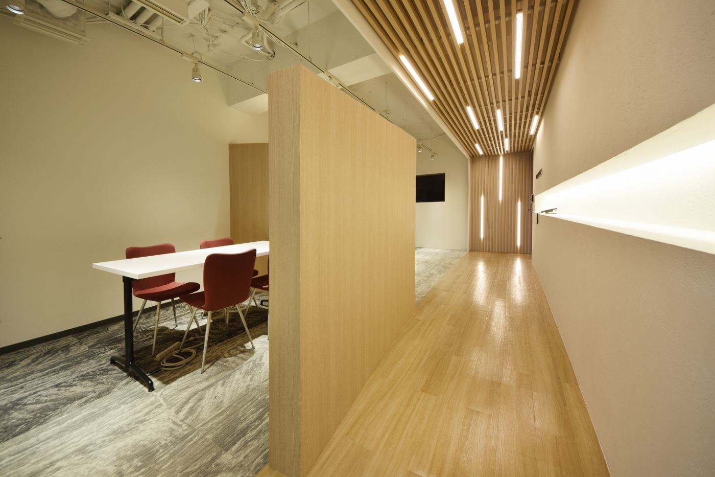 エンジニアの皆様のためのオフィスを創りたいというご要望からプロジェクトがスタートしました。エントランスは、社名の由来の「火縄銃」を連想させるデザインになっています。エレベーターを降りた瞬間のインパクトが衝撃的です。リフレッシュルームは、エンジニアの皆様が気分を変えて仕事が出来、新しいアイデアが生まれるようなクリエイティブな空間に仕上がっています。