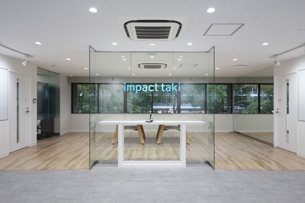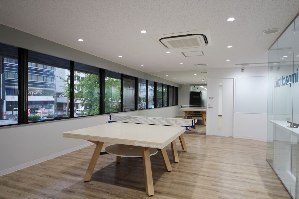 DESIGN デザイン エントランスは、透明ガラスを使うことで視界を遮らないデザインにしました。奥の卓球台はミーティングテーブルとしても使用することが可能です。作業台としても使用可能な大型テーブルや天板昇降式のテーブル、低めのソファを配置しリフレッシュスペースを兼ねたミーティングエリアなども設け、以前のオフィスよりも多様性に富んだミーティングスペースになりました。「白」と「木目」でフロア全体を纏めることで、オフィス全体のデザインに統一感を持たせています。新規購入什器は「白」と「グレー」で同系色で纏め、柔らかな印象の空間にしました。フロア中央の柱とオフィス用のバランスボールは黒色にし、アクセントになっています。