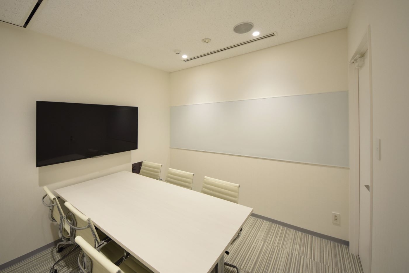 エレベーターを降りるとすぐに、ガラス全面に施されたグラフィックが目に飛び込んでくるインパクトのあるエントランスを作りました。世界地図のグラフィックはグローバルに展開しているプラムフィールドアドバイザリー様の企業イメージを反映させたものです。こちらで働かれる社員様のイメージから連想される、洗練された印象を表現する為、タイルカーペットの貼り分け等、ポイントでデザインを施しながらも白を基調としたシンプルで明るい空間を作り上げました。