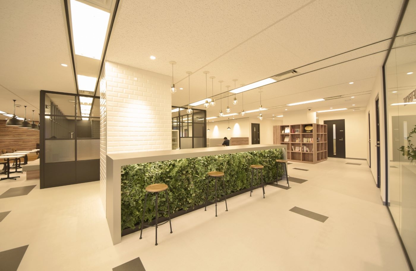 段積ガラスの会議室「GARDEN」を中心に明るく抜け感のある広々としたフロア。メンバーは「KITCHIN」「STUDY」「KOAGARI」などシーンや気分に応じて過ごす場所を選ぶことができます。 8つの会議室は植物の名前をルームネームとし、各部屋コンセプトに基づき豊かなカラーバリエーションでお客様をお迎えします。一部の壁にスライディングウォールを用い、普段使いは小分けの個室として、必要に応じて大人数でのセミナールームとして対応可能なフレキシブルなスペースとなっています。 オープンフロアは社内外コラボレーションを生み、関わり合いが増えることでメンバー同士を家族のように感じられるHOMEオフィスです。