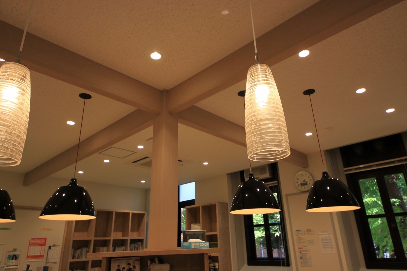 「学生が訪れやすく、気軽に相談できる。そして学生が自ら新しい使い方を見つけてくれるようなキャリアサポートルームしたい。」そんな想いの下、お客様と2人3脚で空間を作り上げました。現状の天井の高さを活かし、すべでの照明計画をし直すことで明るい空間を実現。床や壁、造作家具においても木目やグリーン色を用いることで、カフェのような落ち着いた空間となりました。気軽に調べものや資料の閲覧ができるように、学生スペースには木製の本棚を配置し、ベンチや打合せテーブルを設置することで思い思いの過ごし方が可能になります。個別相談や来客対応には、増設した大小あわせて4つ個室を利用し、無駄のない個室・執務スペースを実現しました。